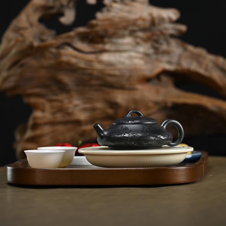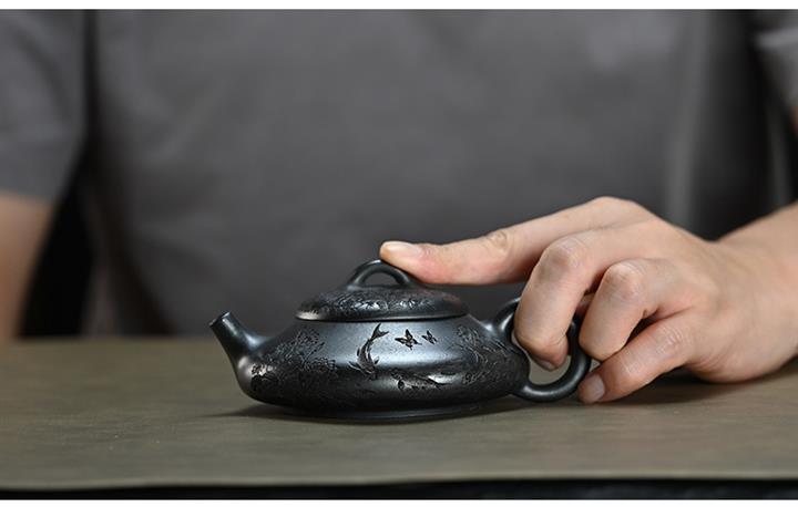 【泥料特點】砂土氣重,似淳實農民,日久使用,漸露鋒芒,養成變化,溫潤莊重。紫砂是壹種雙重氣孔結構的多孔性材質,氣孔微細,密度高。用紫砂壺沏茶,不失原味,且香不渙散,得茶之真香真味。紫砂使用越久,壺身色澤越發光亮照人,氣韻溫雅。紫砂壺長久使用器身會因撫摸擦拭,變得越發溫潤光澤。