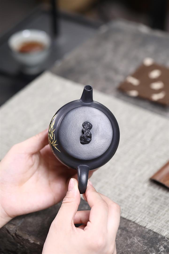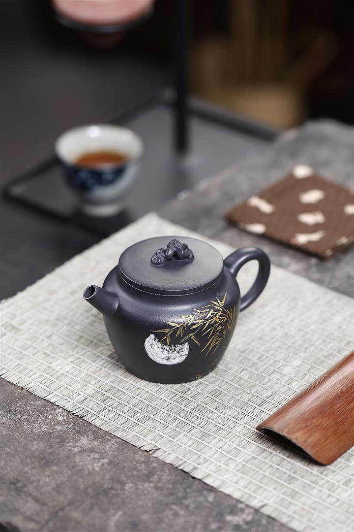 原礦墨綠泥任平生竹鼎茶壺POT7020