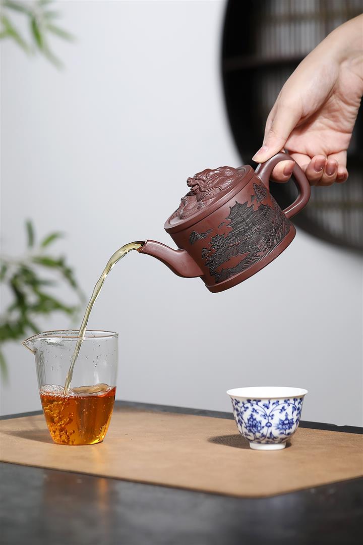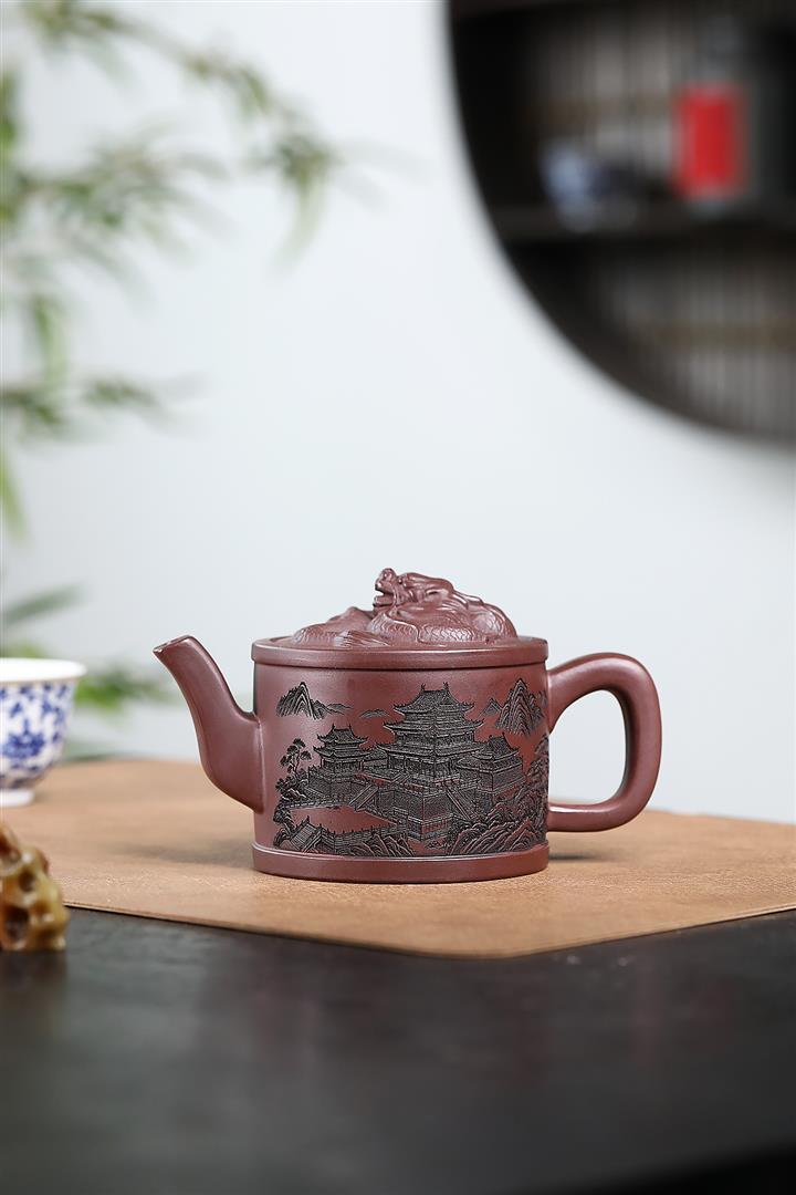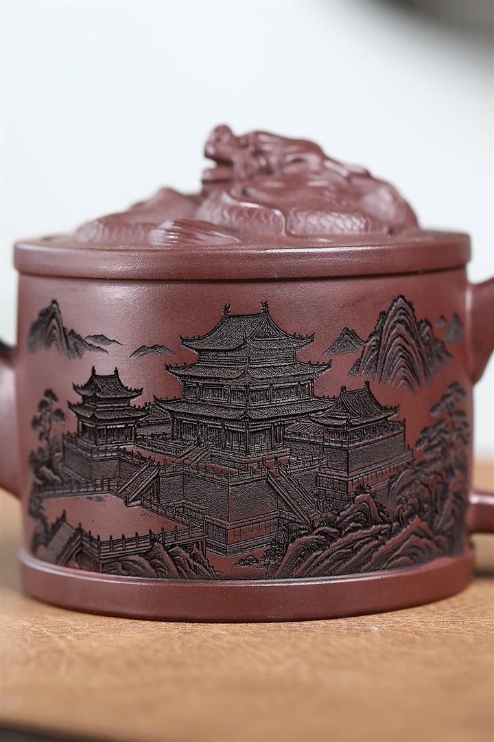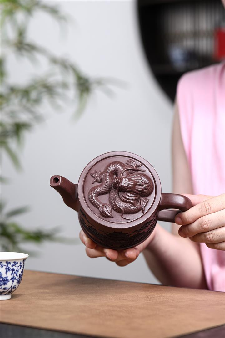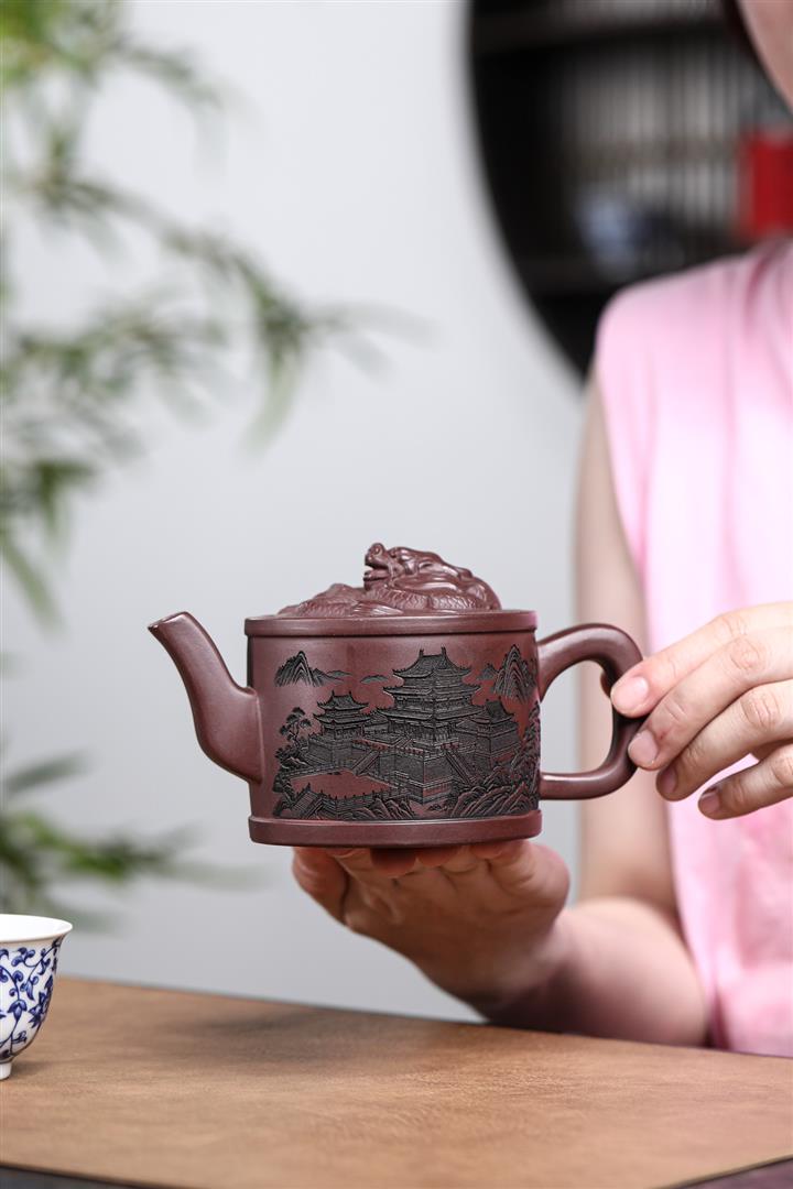 330cc原礦紫泥嶽陽樓閣龍頭漢瓦壺POT8371