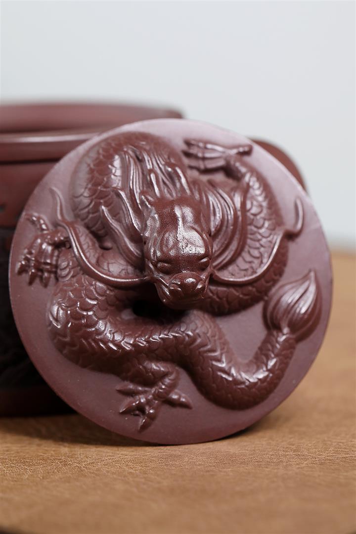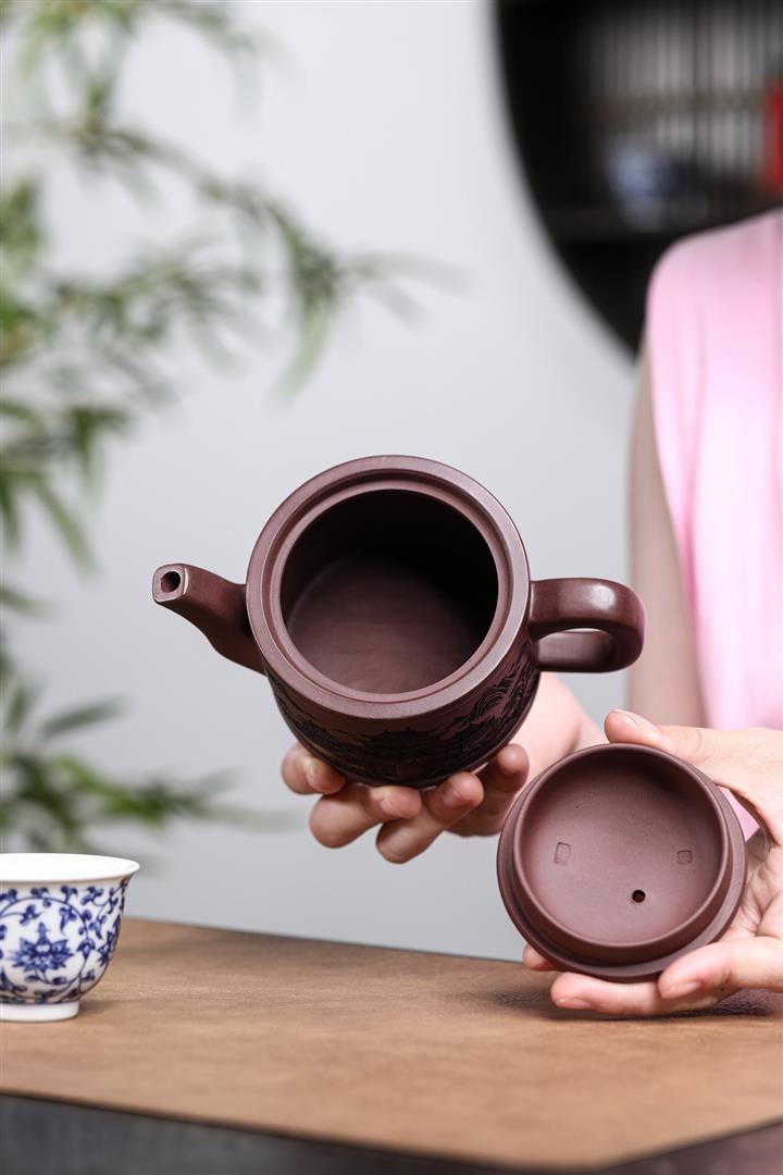 230cc原礦紫泥滿刻寬圓丹羽壺POT8097