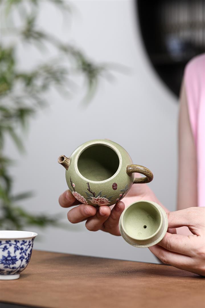 【泥料特點】砂土氣重,似淳實農民,日久使用,漸露鋒芒,養成變化,溫潤莊重。紫砂是壹種雙重氣孔結構的多孔性材質,氣孔微細,密度高。用紫砂壺沏茶,不失原味,且香不渙散,得茶之真香真味。紫砂使用越久,壺身色澤越發光亮照人,氣韻溫雅。紫砂壺長久使用器身會因撫摸擦拭,變得越發溫潤光澤。
