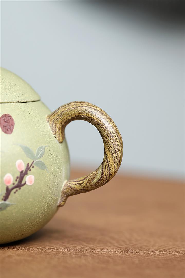 【作品介紹】此款壺形線條流暢,壺把,壺嘴,壺身壹氣呵成栩栩如生,是收藏把玩的好壺,泥料色澤古樸典雅,日久使用,漸露鋒芒,養成變化快,溫潤莊重,用其泡茶,使用的年代久,壺身就溫潤,泡出來的茶湯也就醇郁芳馨。
