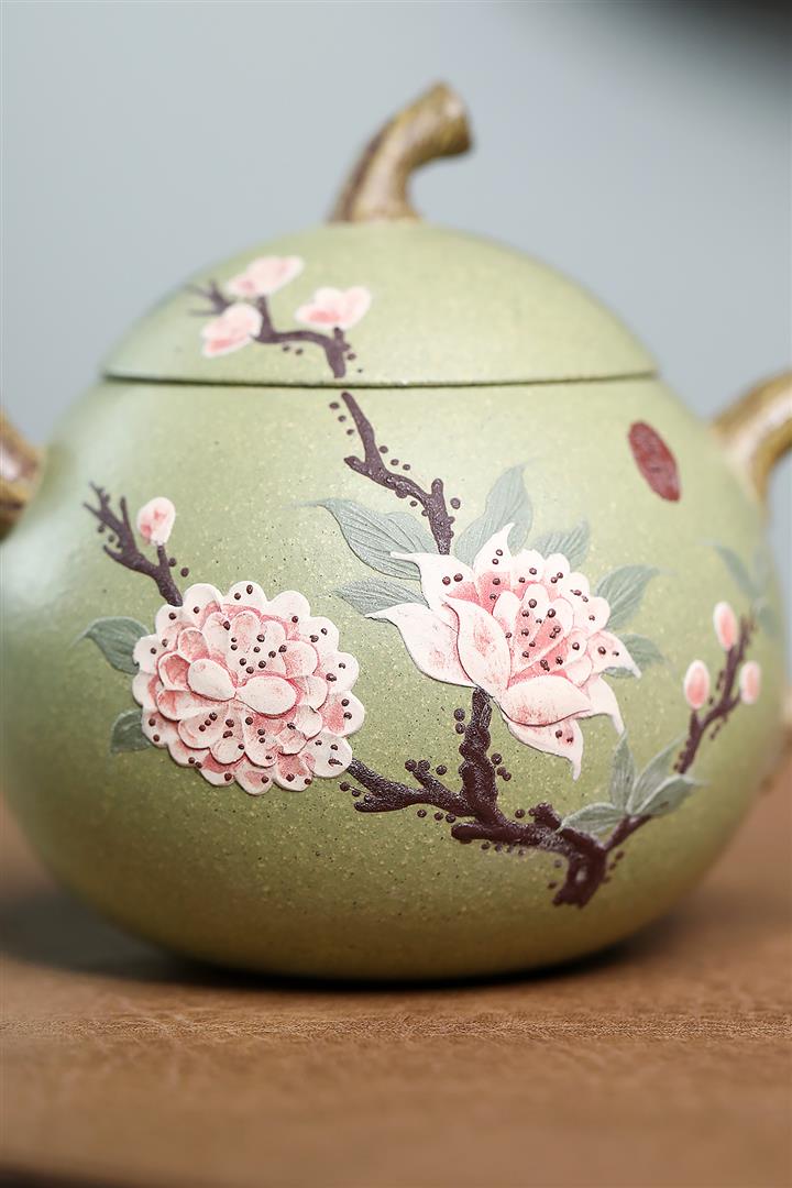 420cc原礦高溫段泥花開富貴潘壺茶壺POT8651