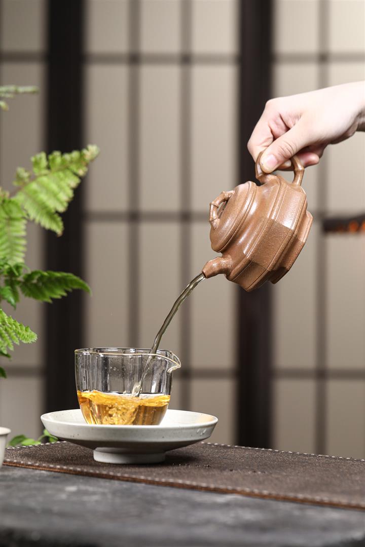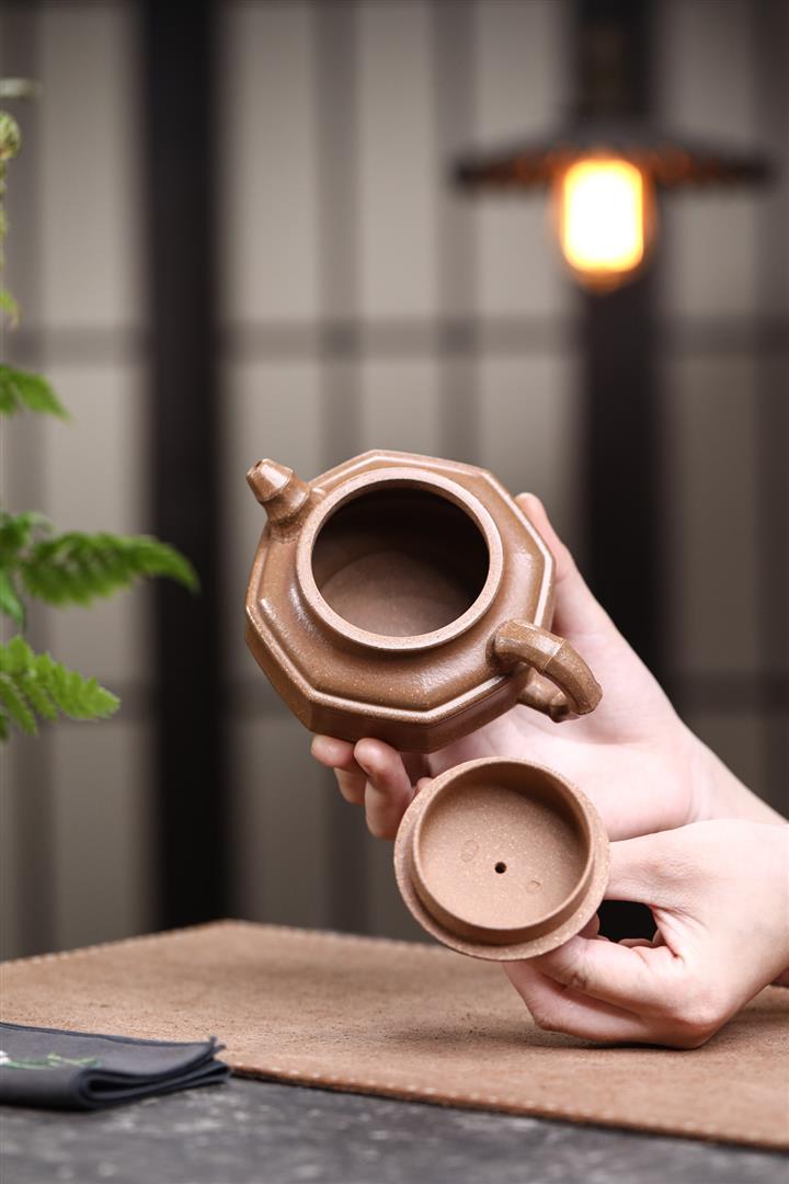 【泥料特點】砂土氣重,似淳實農民,日久使用,漸露鋒芒,養成變化,溫潤莊重。紫砂是壹種雙重氣孔結構的多孔性材質,氣孔微細,密度高。用紫砂壺沏茶,不失原味,且香不渙散,得茶之真香真味。紫砂使用越久,壺身色澤越發光亮照人,氣韻溫雅。紫砂壺長久使用器身會因撫摸擦拭,變得越發溫潤光澤。