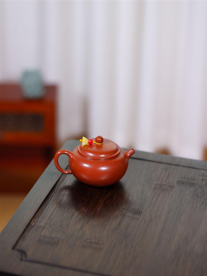95cc原礦梨皮朱泥小品蘋果茶壺POT8387