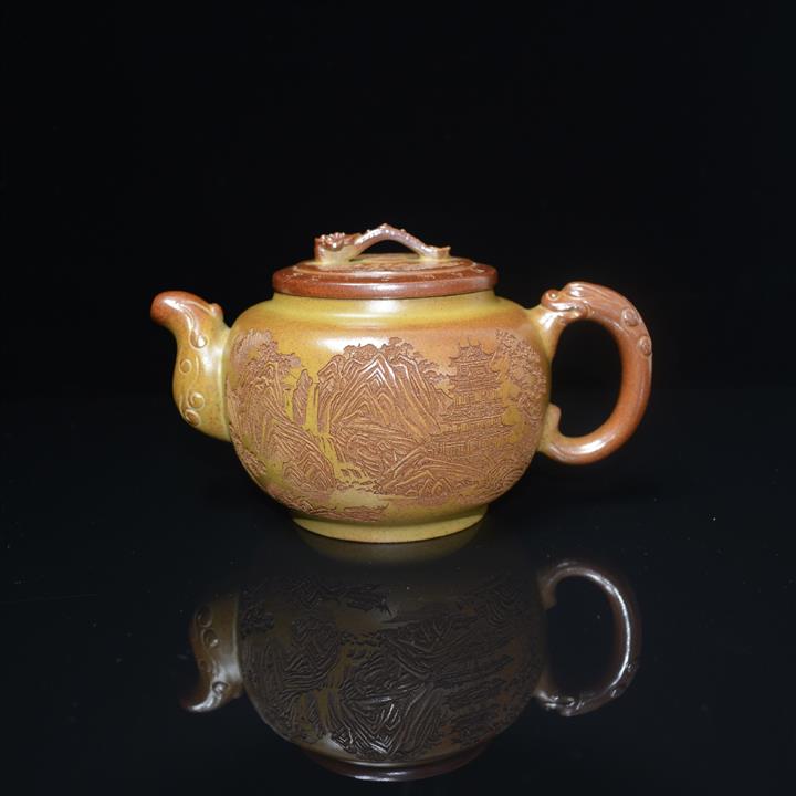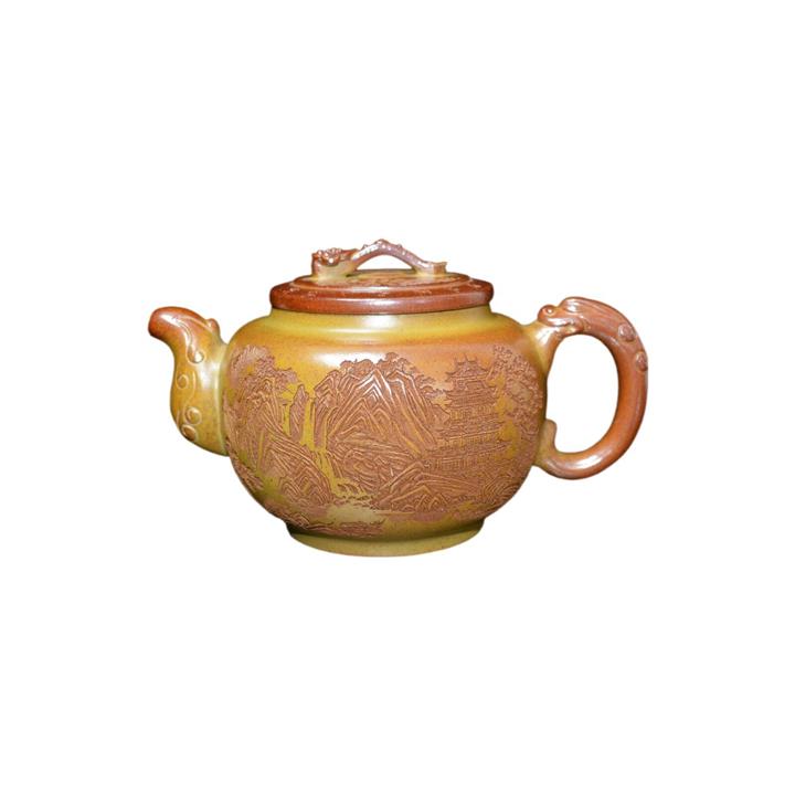 480cc原礦石黃泥滿刻萬馬奔騰茶壺POT7973
