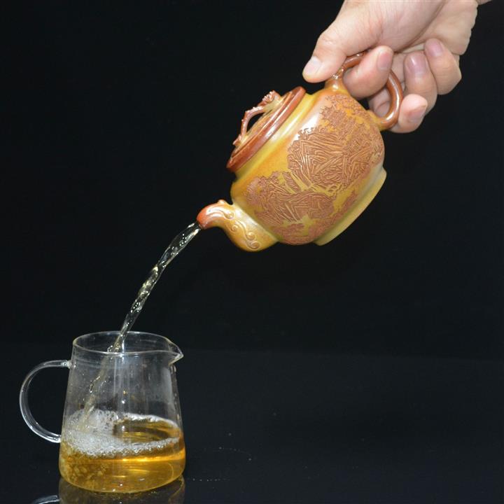 【泥料特點】砂土氣重,似淳實農民,日久使用,漸露鋒芒,養成變化,溫潤莊重。紫砂是壹種雙重氣孔結構的多孔性材質,氣孔微細,密度高。用紫砂壺沏茶,不失原味,且香不渙散,得茶之真香真味。紫砂使用越久,壺身色澤越發光亮照人,氣韻溫雅。紫砂壺長久使用器身會因撫摸擦拭,變得越發溫潤光澤。