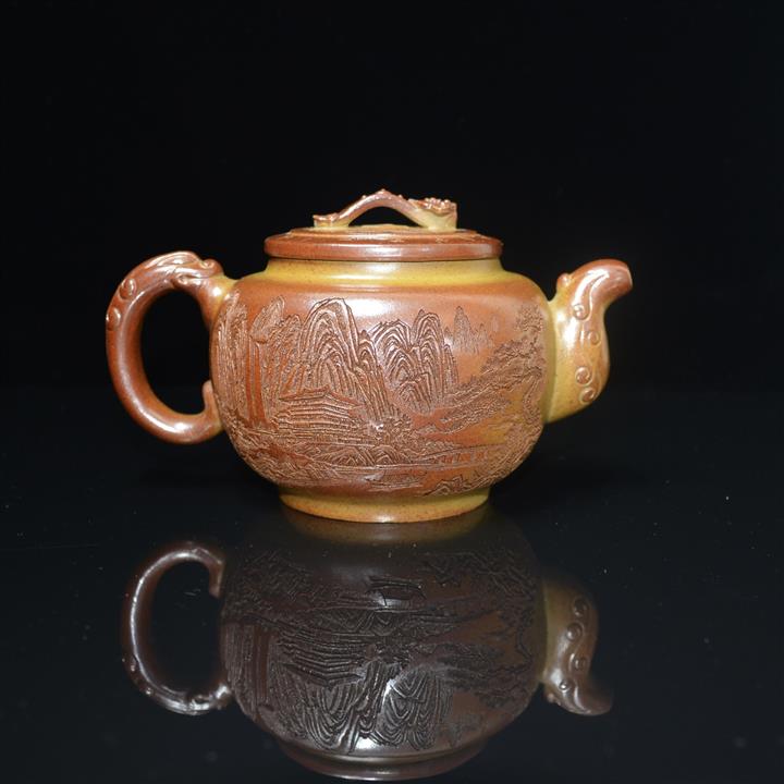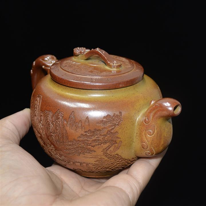 630cc原礦古銅泥滿刻百鳥朝鳳茶壺POT7969