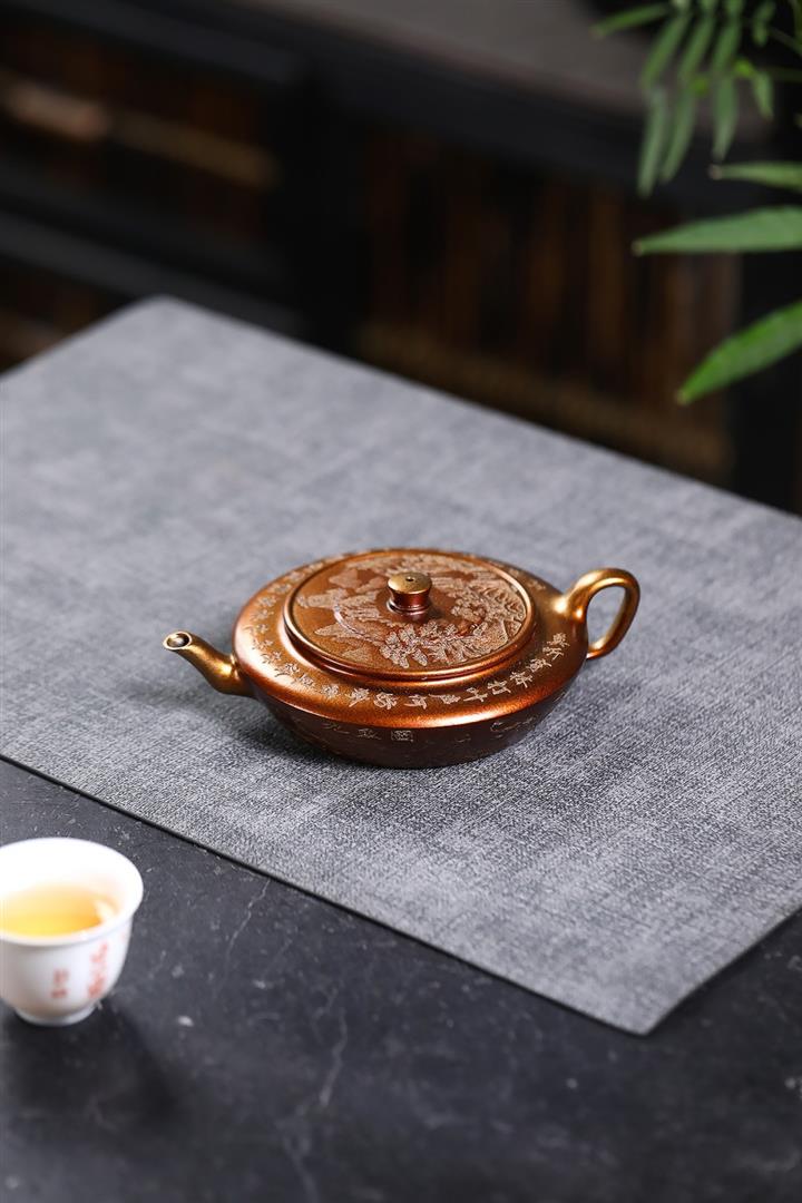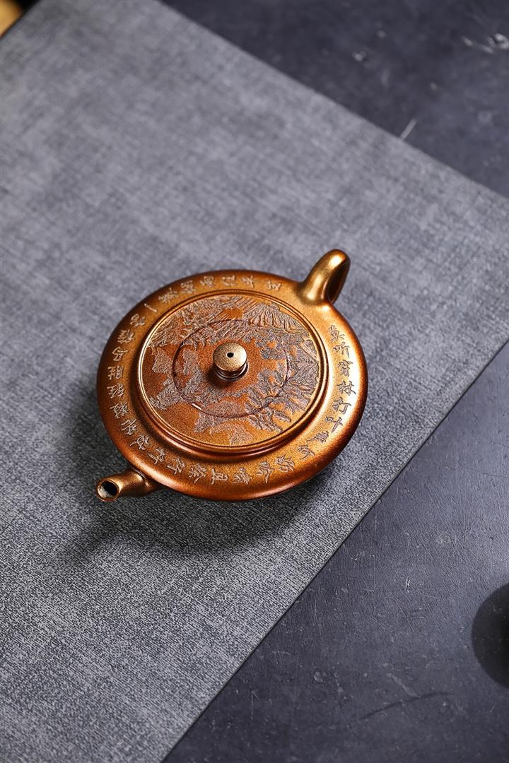 190cc原礦石黃泥貝殼燒金麟扁舟茶壺POT8401