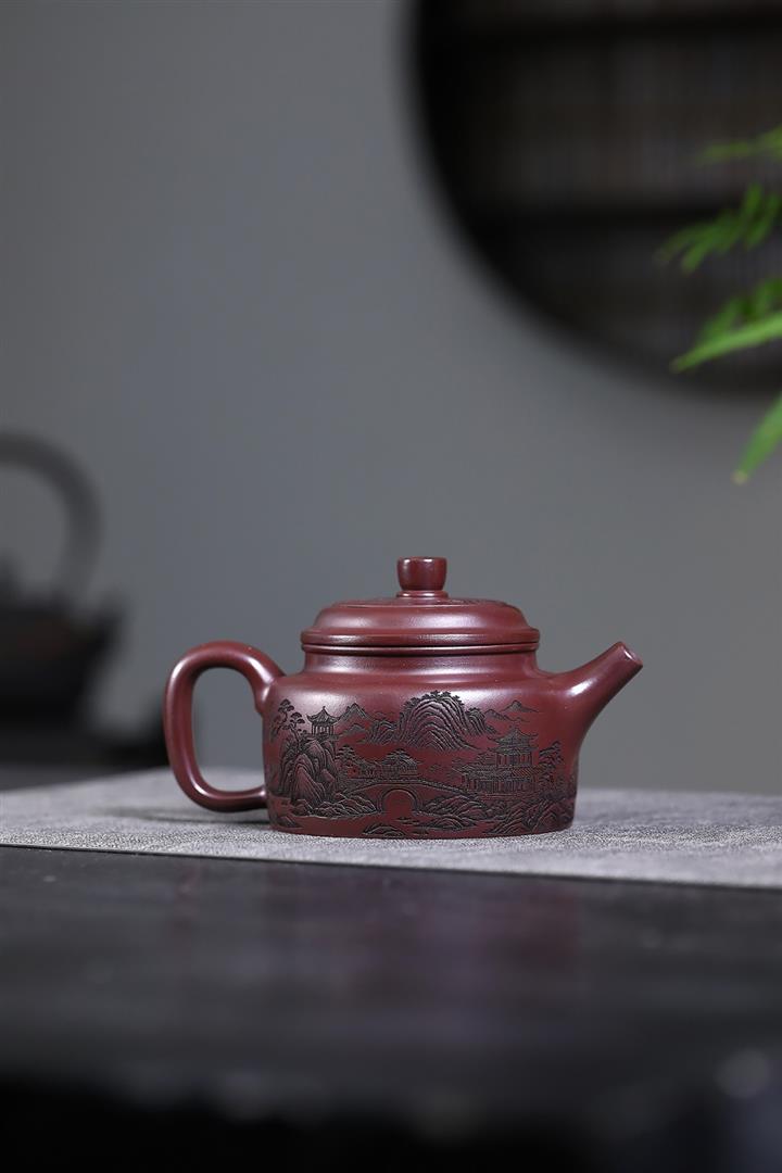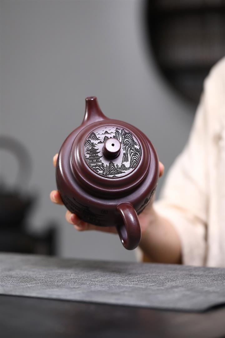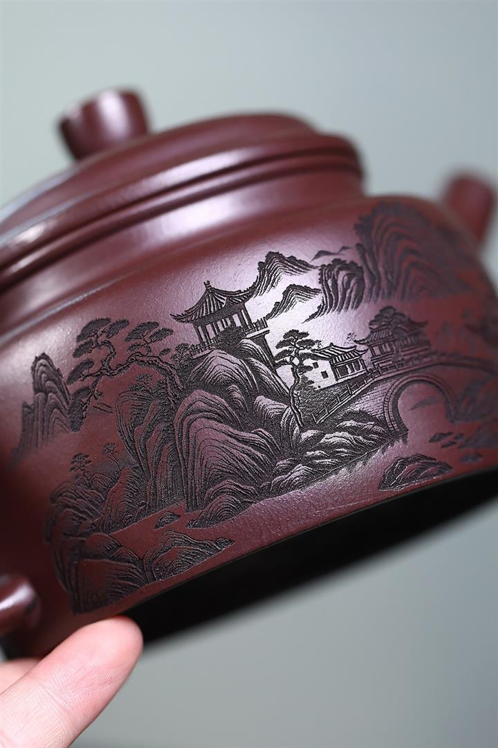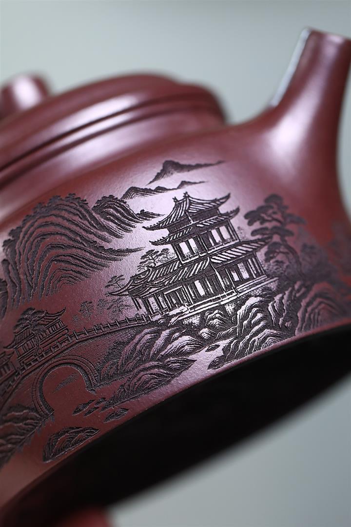 460cc原礦石紅泥滿刻鐘鳴山河茶壺POT8402