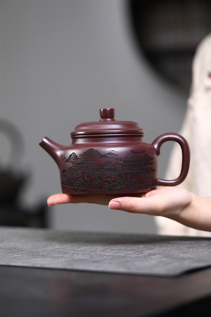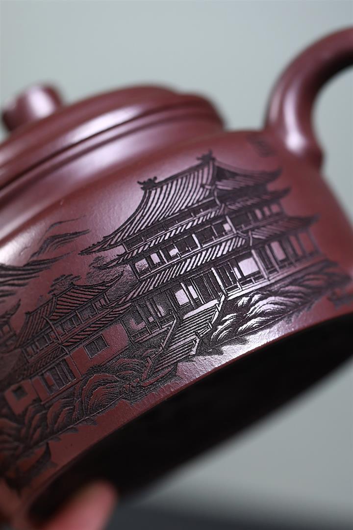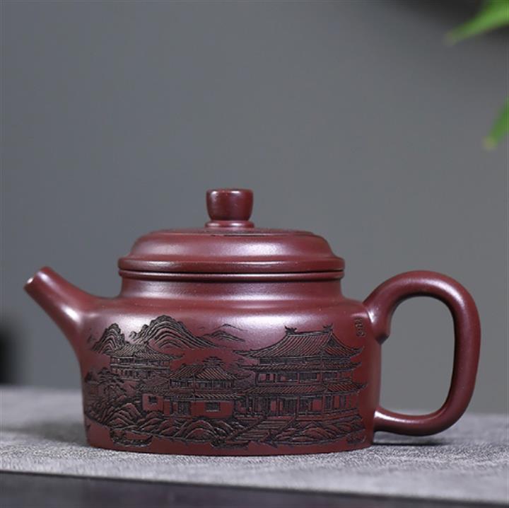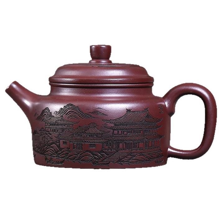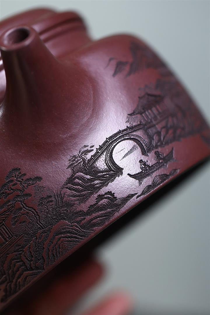 460cc原礦石紅泥滿刻鐘鳴山河茶壺POT8402