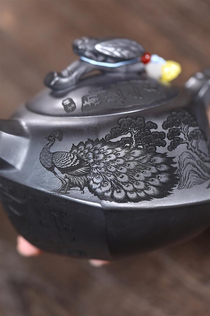 500cc原礦石黃泥松蟬雀韻泡茶壺POT8405