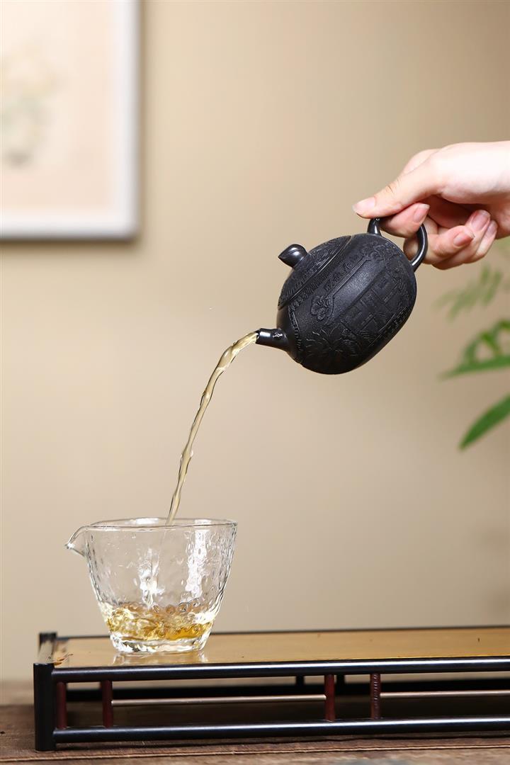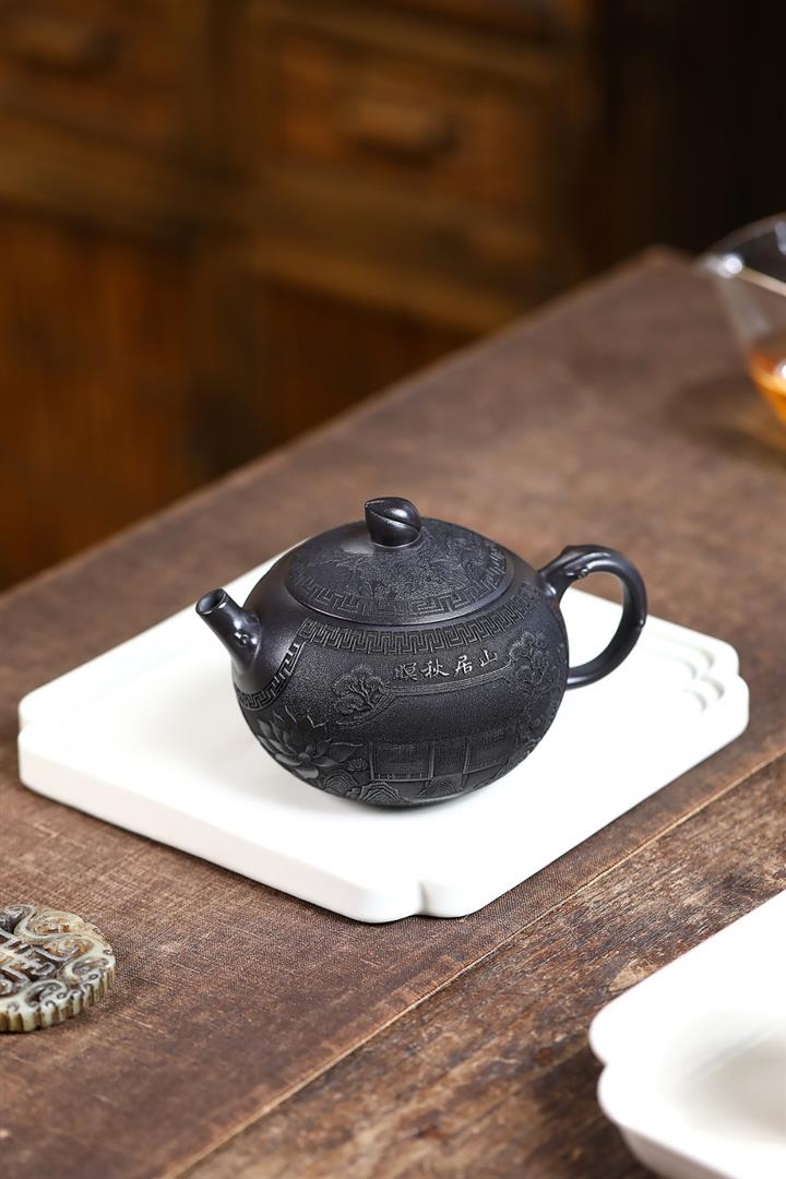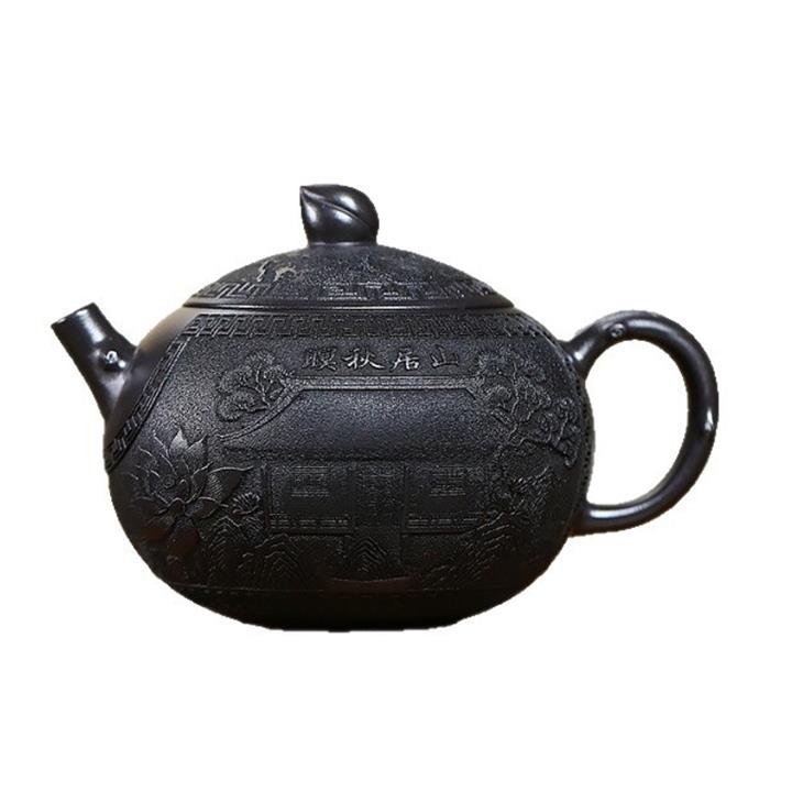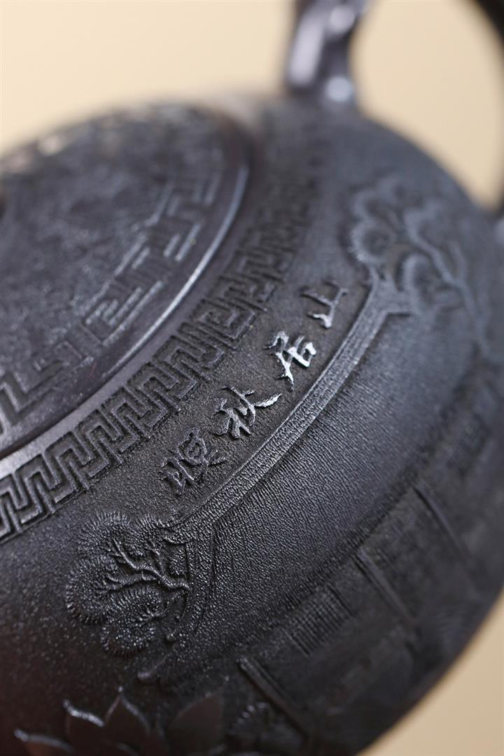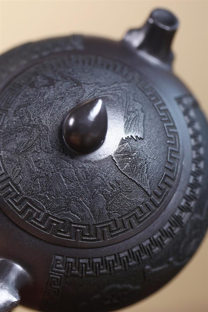 原礦黑泥彩繪仙鶴龍龜茶壺POT6832