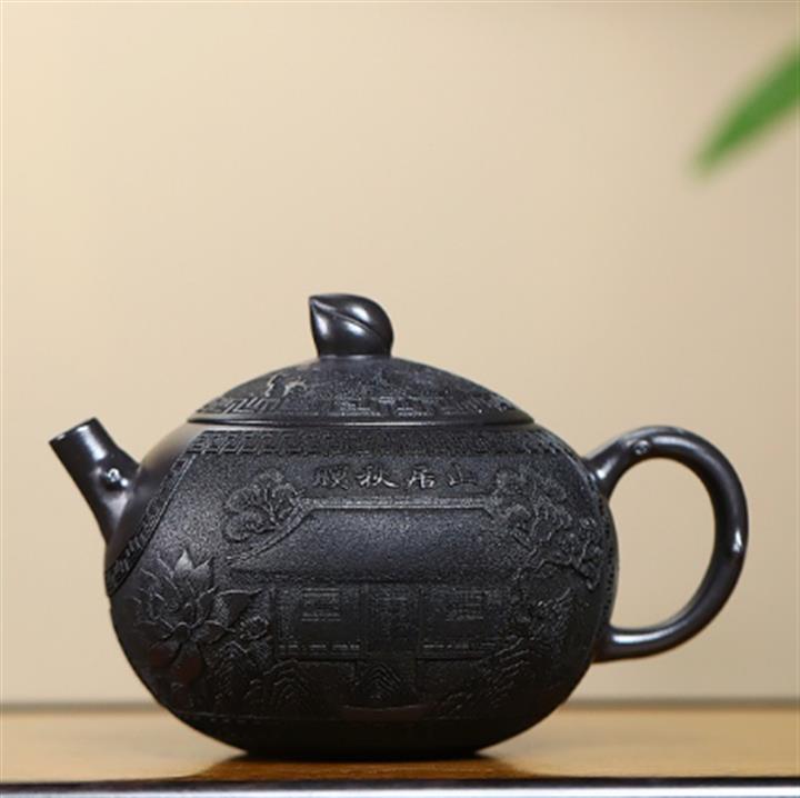 250cc原礦石黃泥滿刻桃源仙居茶壺POT8406