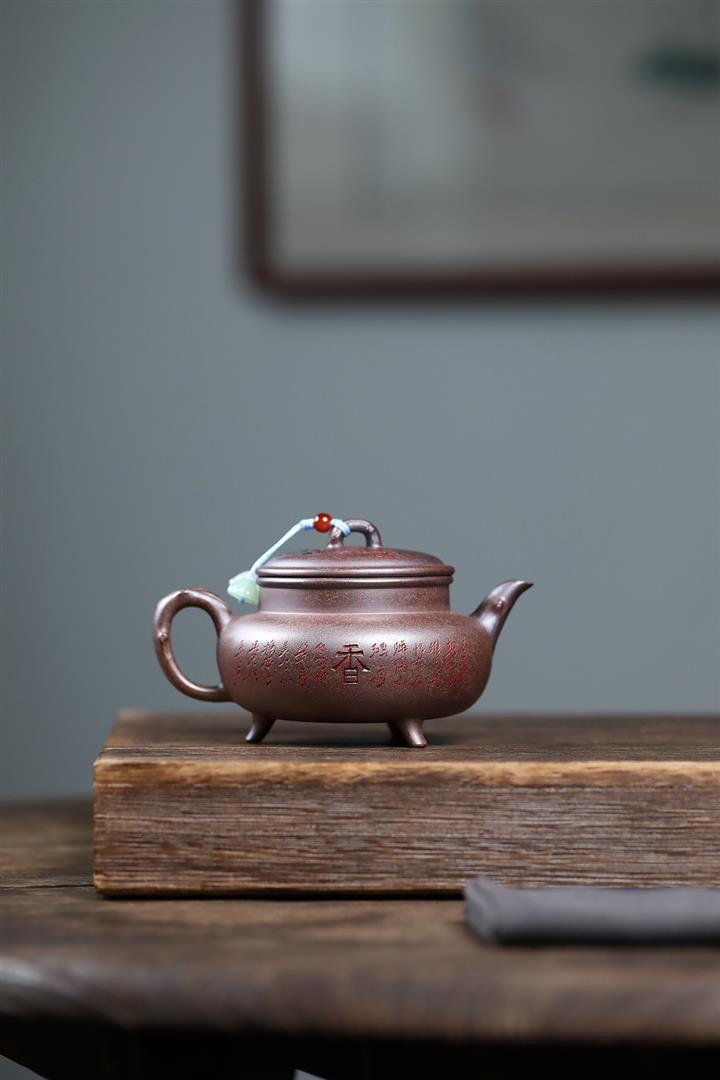 160cc原礦柴燒胭脂段泥疏影暗香茶壺POT8408