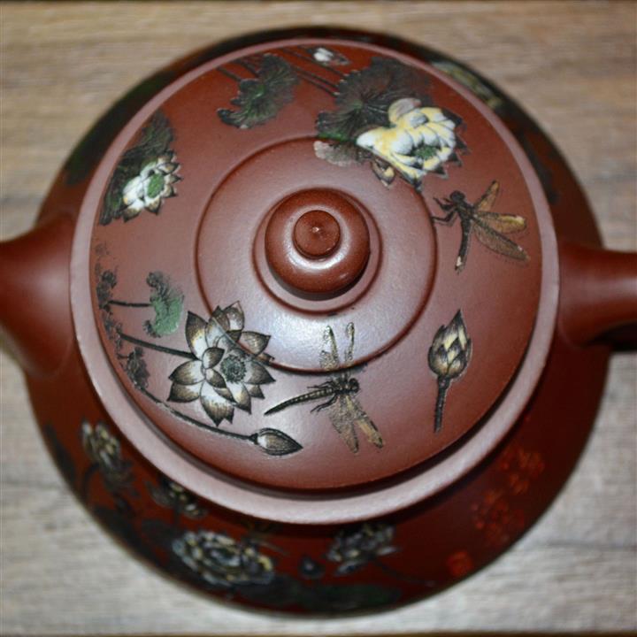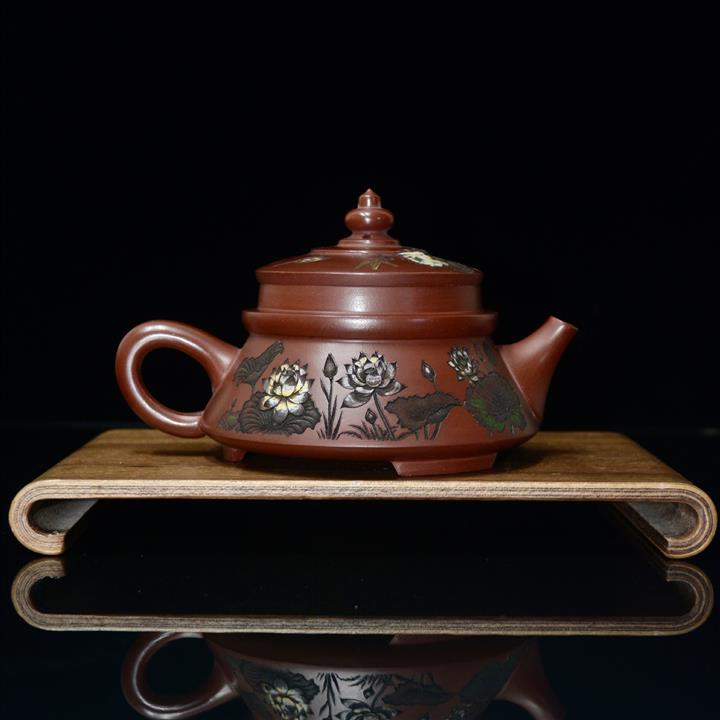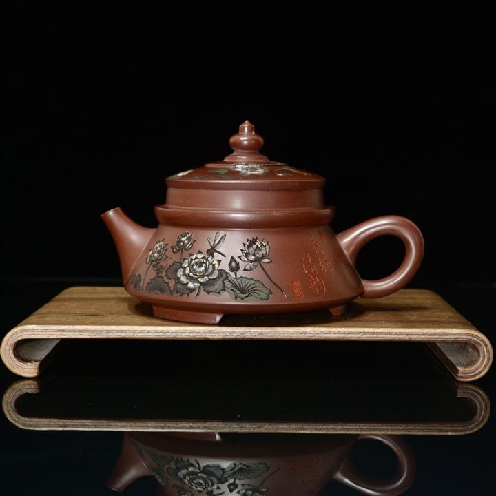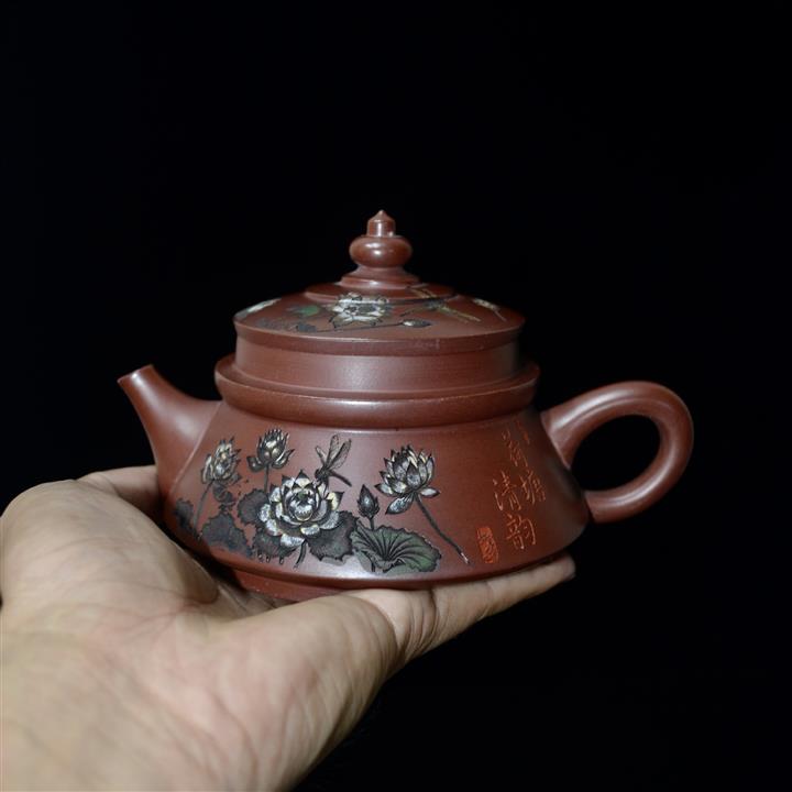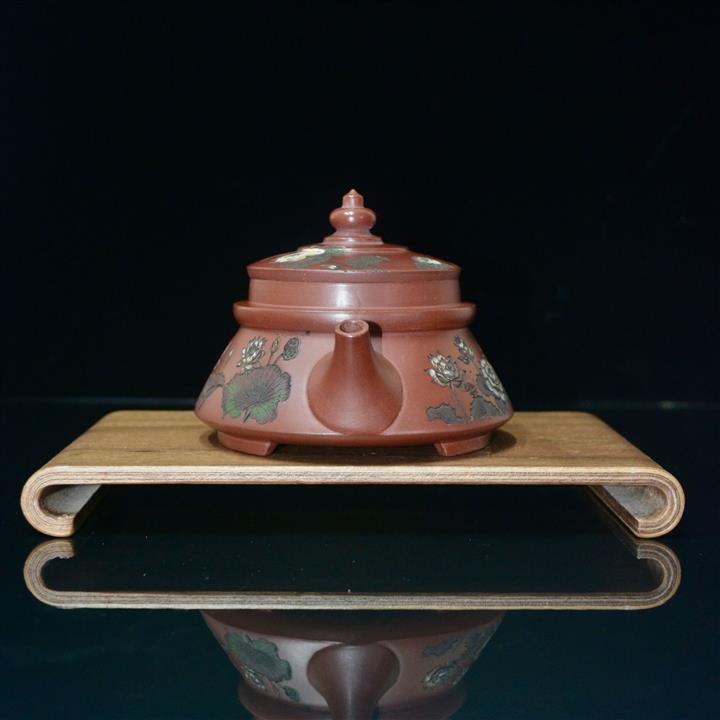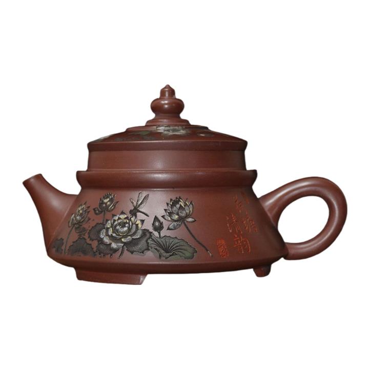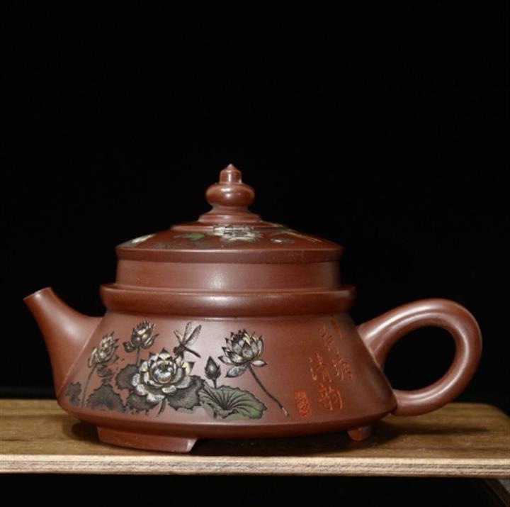 260cc原礦紅皮龍泥繪荷塘清韻寶塔茶壺POT8412
