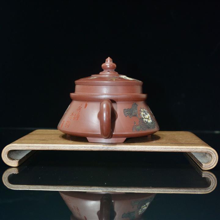 墨綠泥九齡君子蘭幾何周盤茶壺POT6518