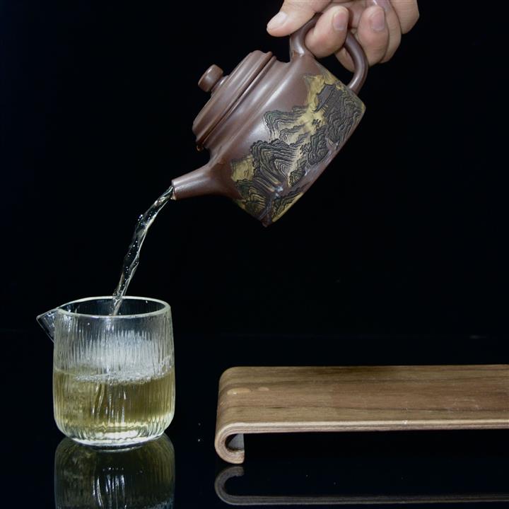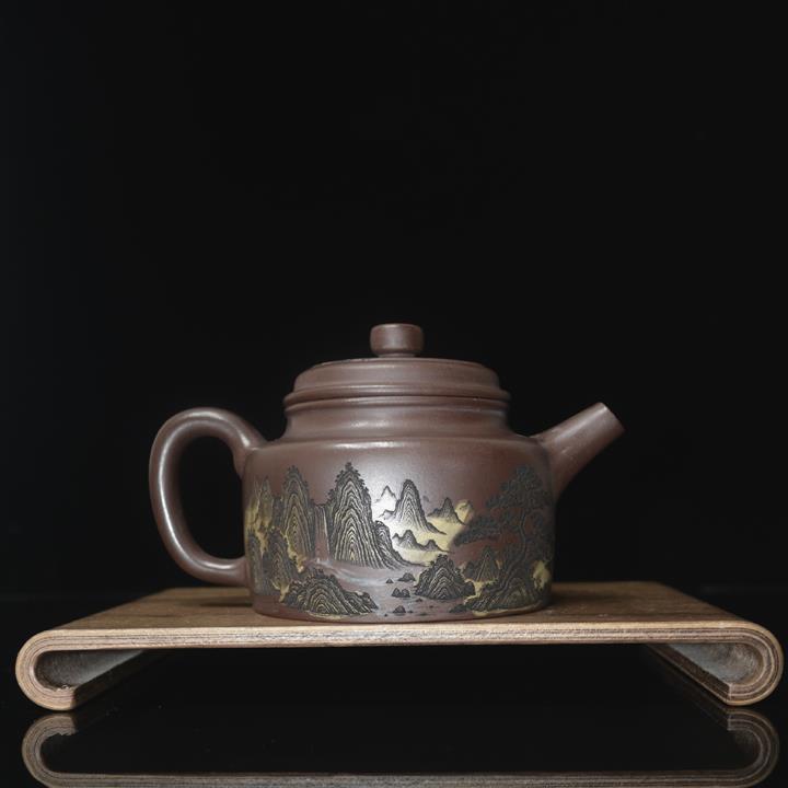 300cc原礦紫泥泥繪山水德鐘泡茶壺POT8413