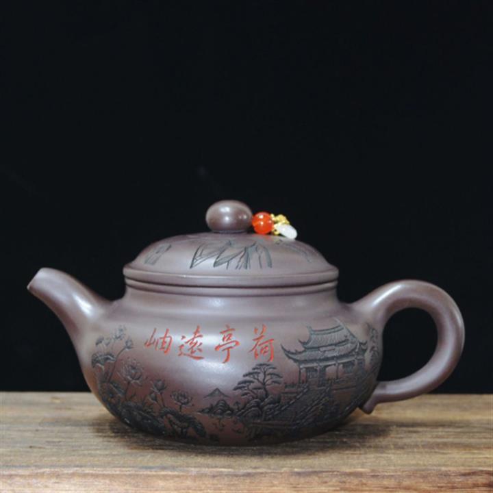 340cc原礦紫泥刻繪山水仿古泡茶壺POT8416