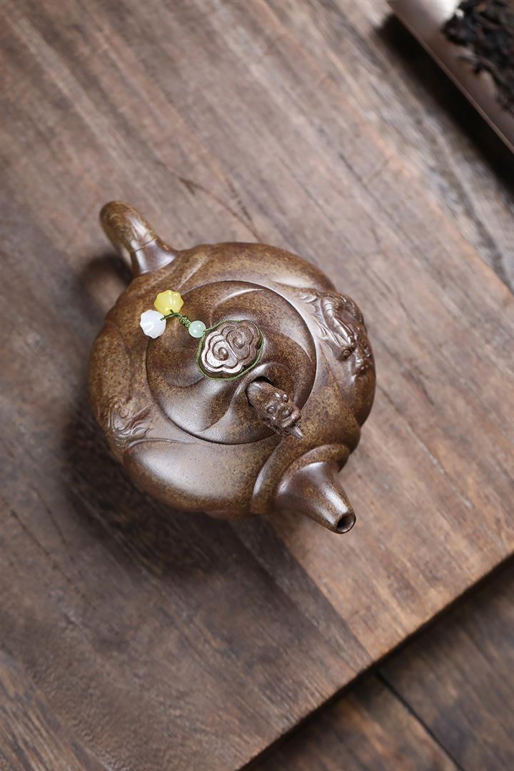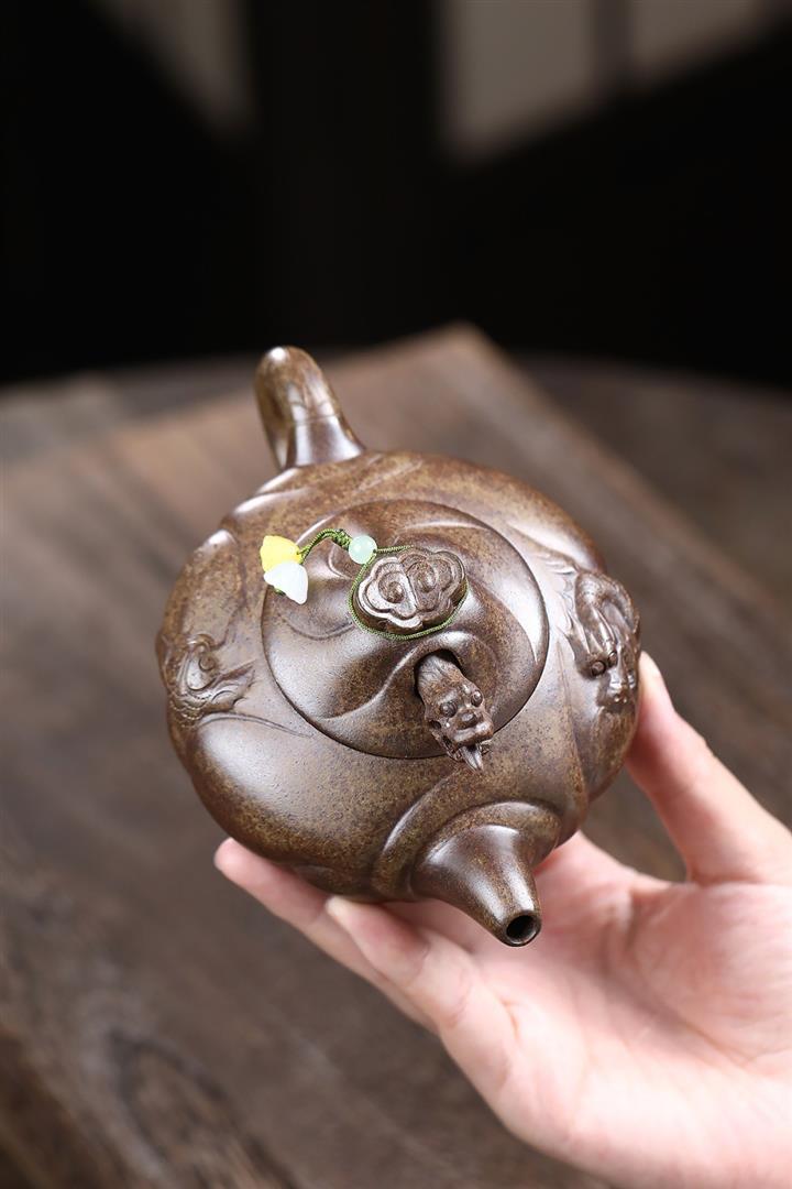 原礦大紅袍焐灰吉祥如意漢瓦茶壺POT7642