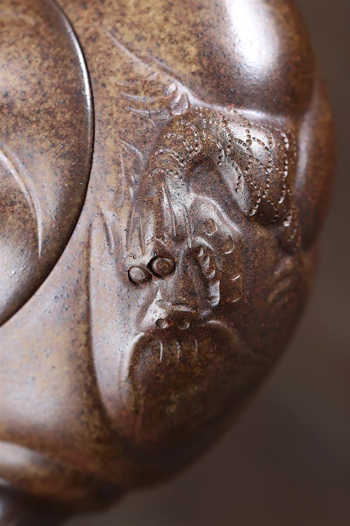 原礦陳腐紫泥滿刻羅漢漢瓦壺POT7641