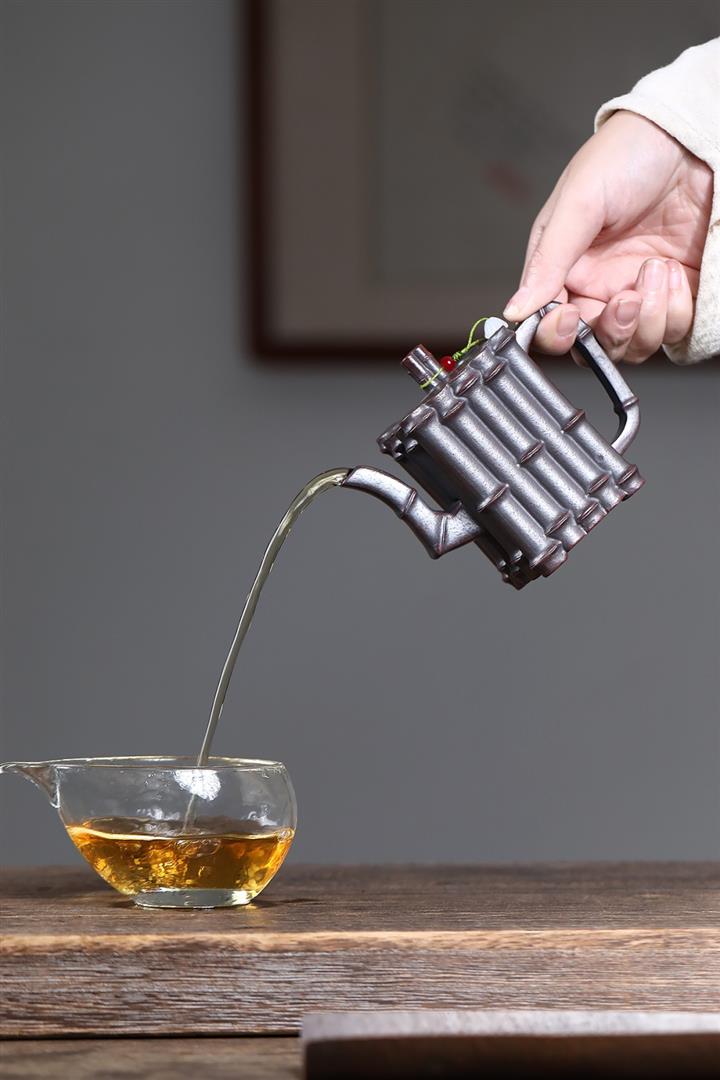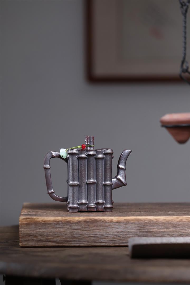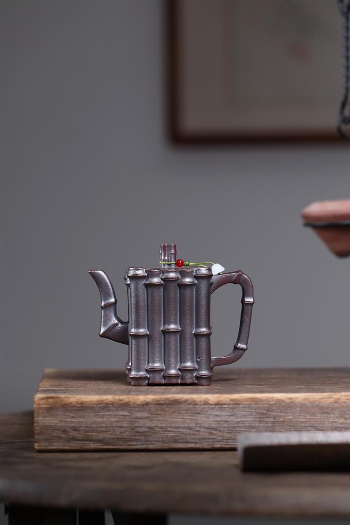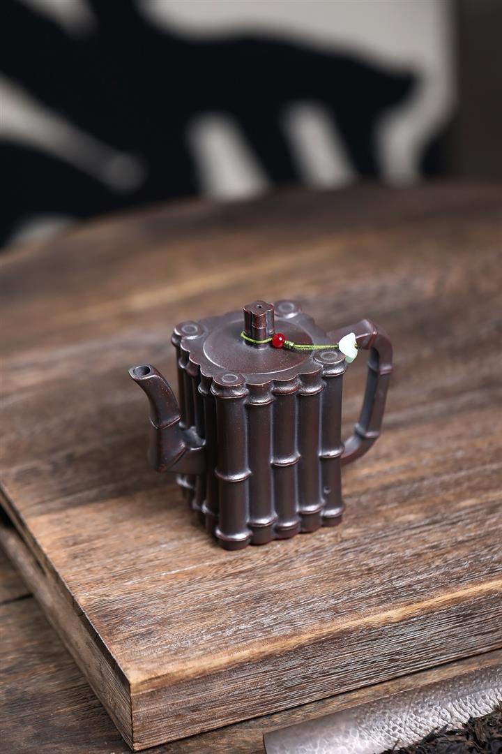 260cc原礦古銅泥四方捆竹茶壺POT8420