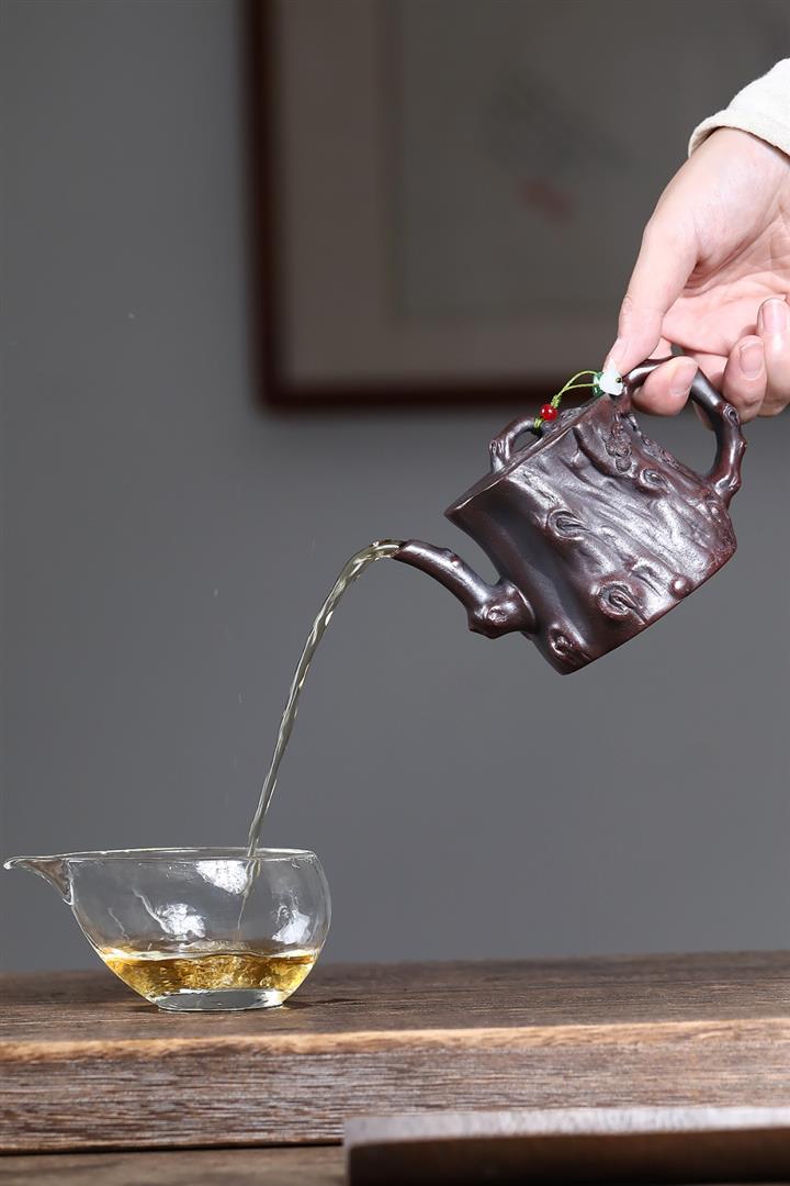 【泥料特點】砂土氣重,似淳實農民,日久使用,漸露鋒芒,養成變化,溫潤莊重。紫砂是壹種雙重氣孔結構的多孔性材質,氣孔微細,密度高。用紫砂壺沏茶,不失原味,且香不渙散,得茶之真香真味。紫砂使用越久,壺身色澤越發光亮照人,氣韻溫雅。紫砂壺長久使用器身會因撫摸擦拭,變得越發溫潤光澤。