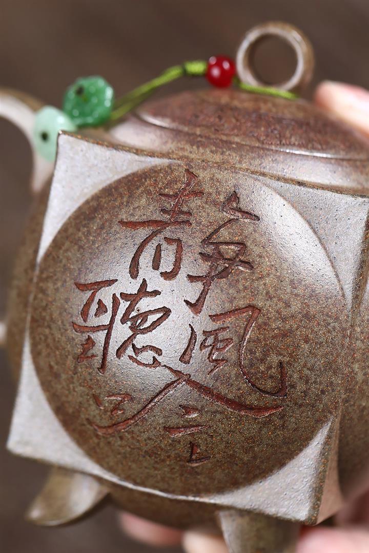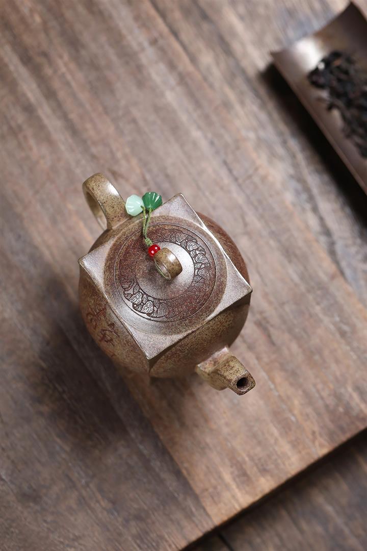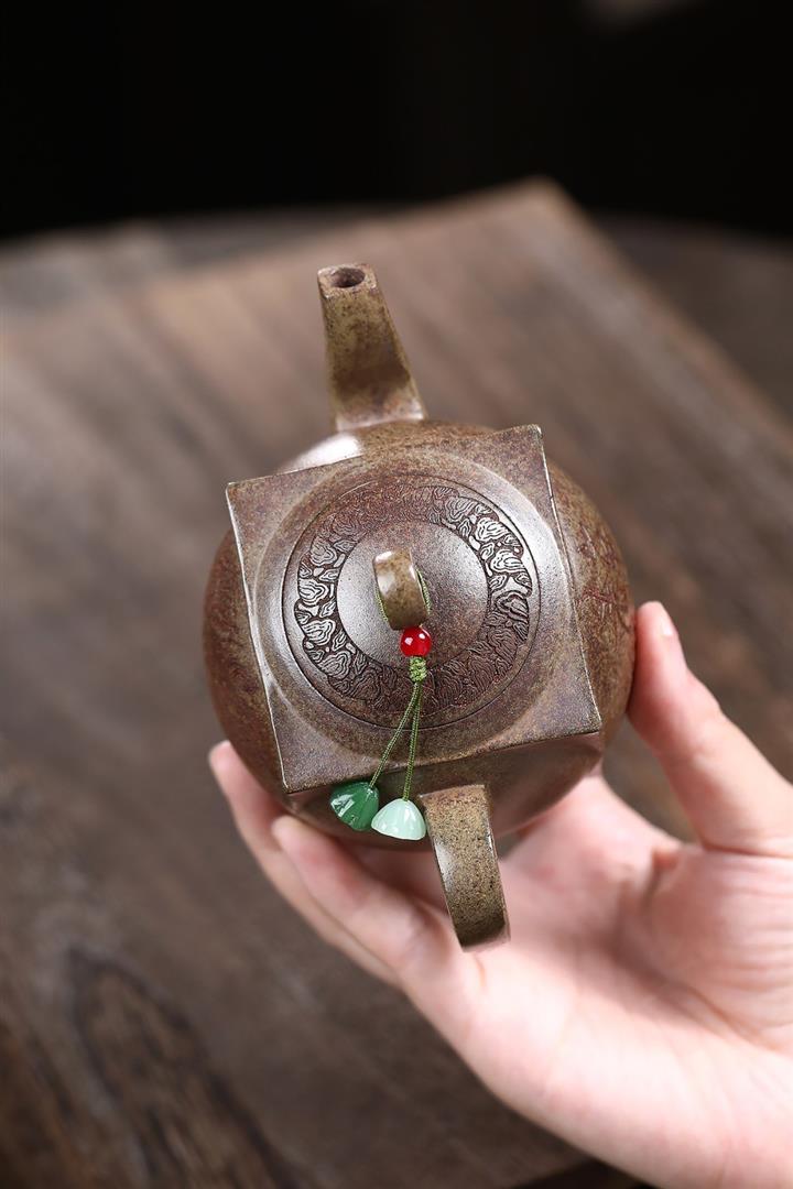 200cc原礦沈香泥柴燒天圓地方茶壺POT8435