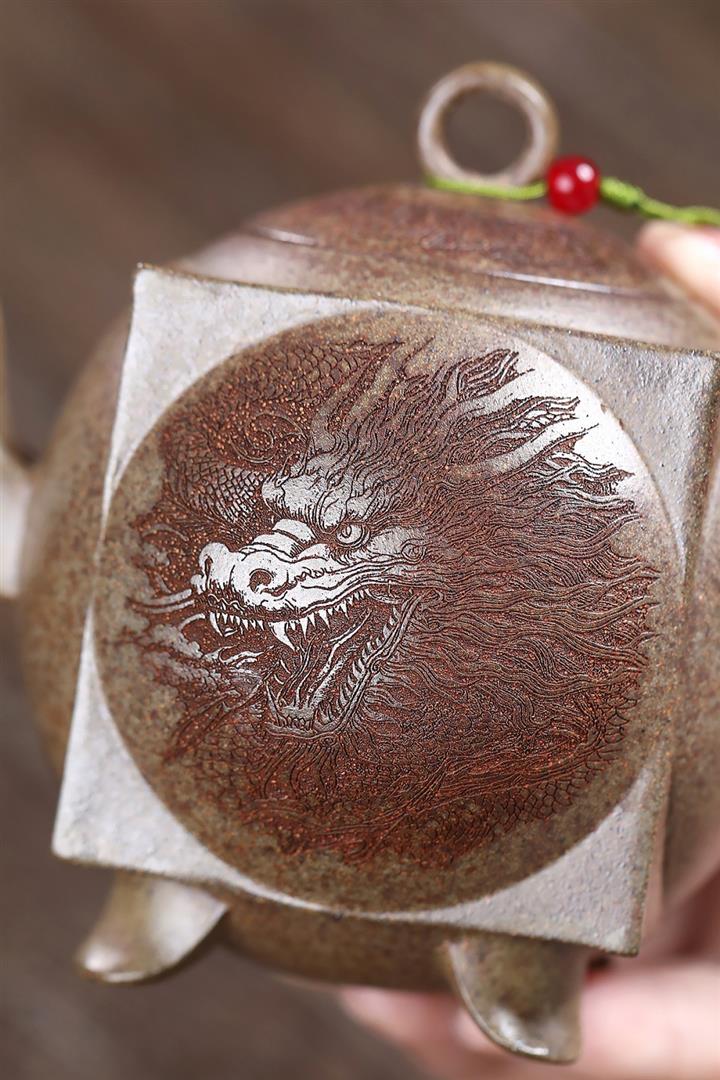 120cc雞血大紅袍彩刻小龍蛋茶壺POT8177
