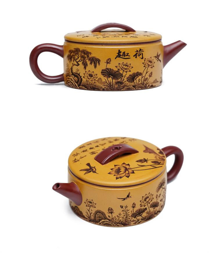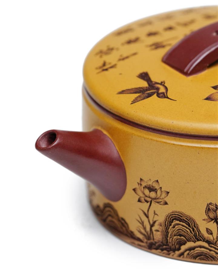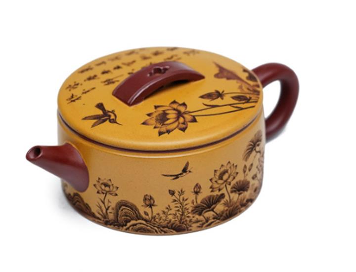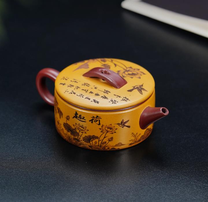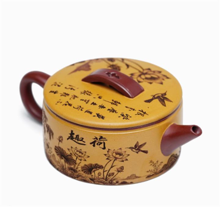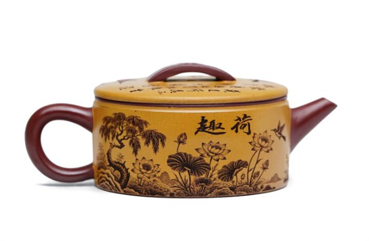 【泥料特點】砂土氣重,似淳實農民,日久使用,漸露鋒芒,養成變化,溫潤莊重。紫砂是壹種雙重氣孔結構的多孔性材質,氣孔微細,密度高。用紫砂壺沏茶,不失原味,且香不渙散,得茶之真香真味。紫砂使用越久,壺身色澤越發光亮照人,氣韻溫雅。紫砂壺長久使用器身會因撫摸擦拭,變得越發溫潤光澤。