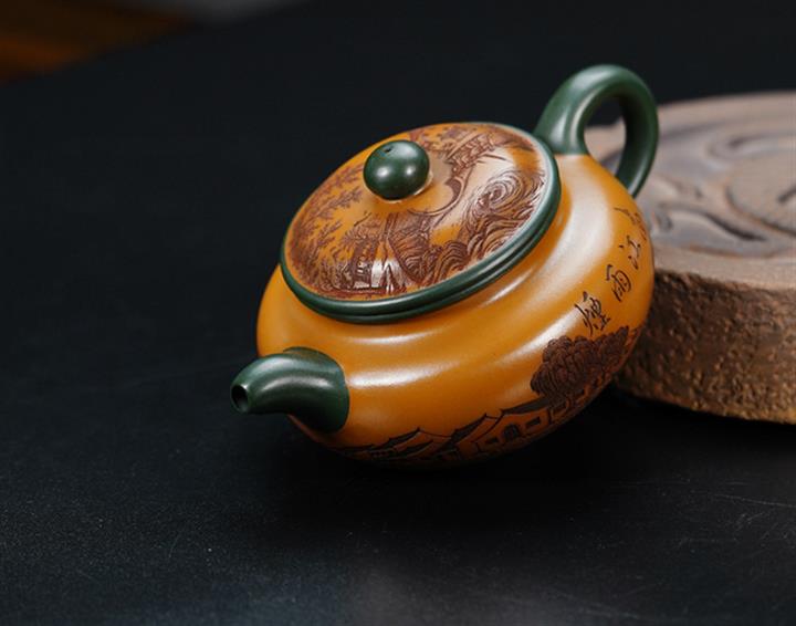 【作品介紹】此款壺形線條流暢,壺把,壺嘴,壺身壹氣呵成栩栩如生,是收藏把玩的好壺,泥料色澤古樸典雅,日久使用,漸露鋒芒,養成變化快,溫潤莊重,用其泡茶,使用的年代久,壺身就溫潤,泡出來的茶湯也就醇郁芳馨。