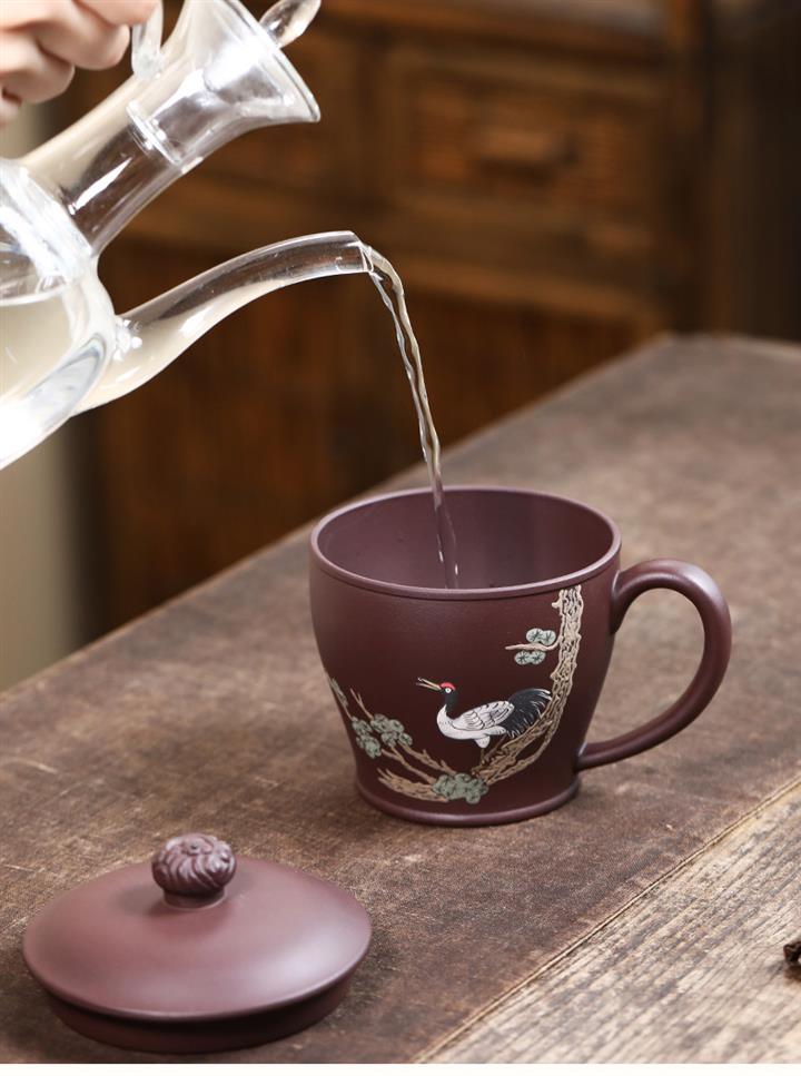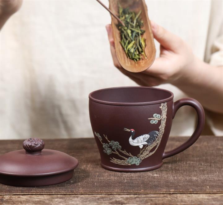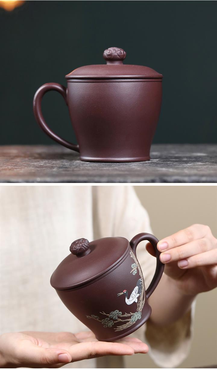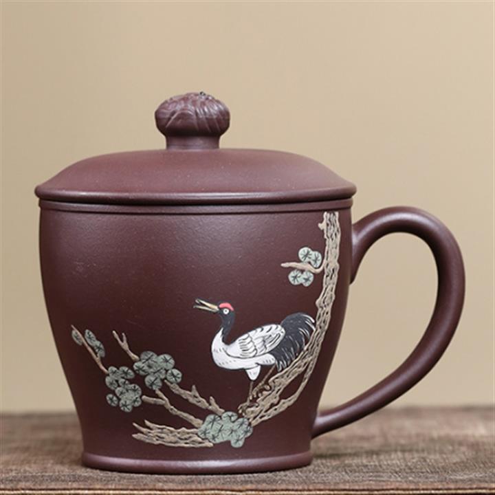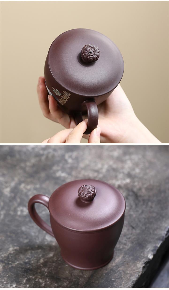 345cc原礦紫泥手工泥繪茶杯POT8463