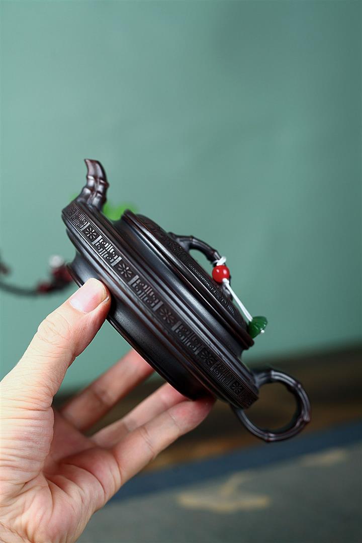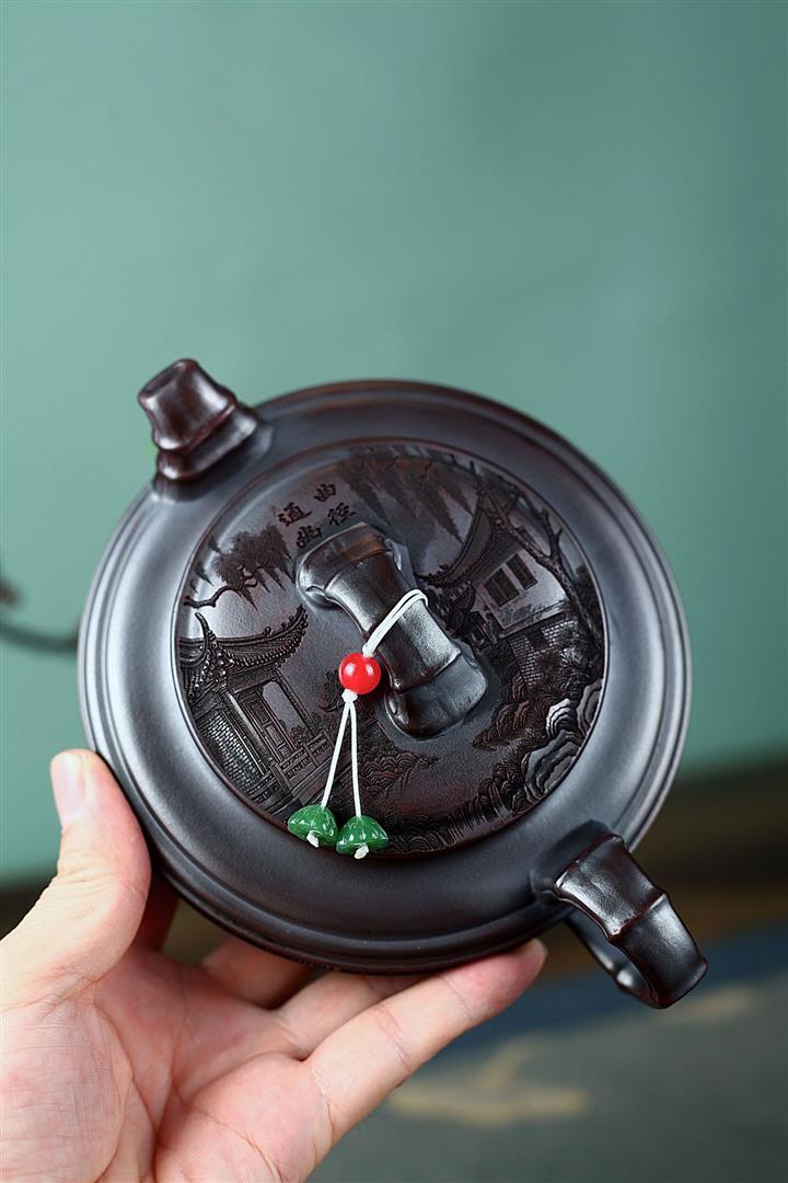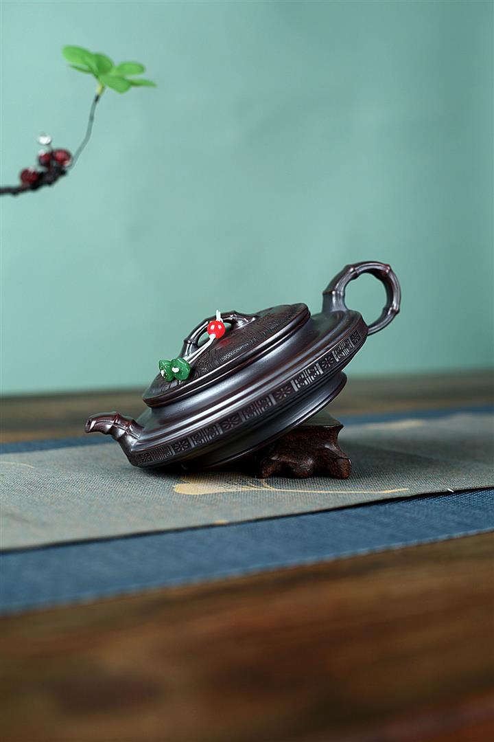 【作品介紹】此款壺形線條流暢,壺把,壺嘴,壺身壹氣呵成栩栩如生,是收藏把玩的好壺,泥料色澤古樸典雅,日久使用,漸露鋒芒,養成變化快,溫潤莊重,用其泡茶,使用的年代久,壺身就溫潤,泡出來的茶湯也就醇郁芳馨。