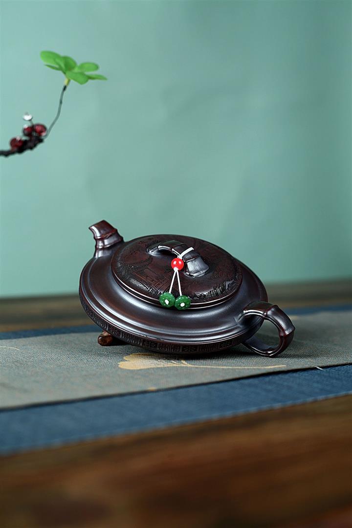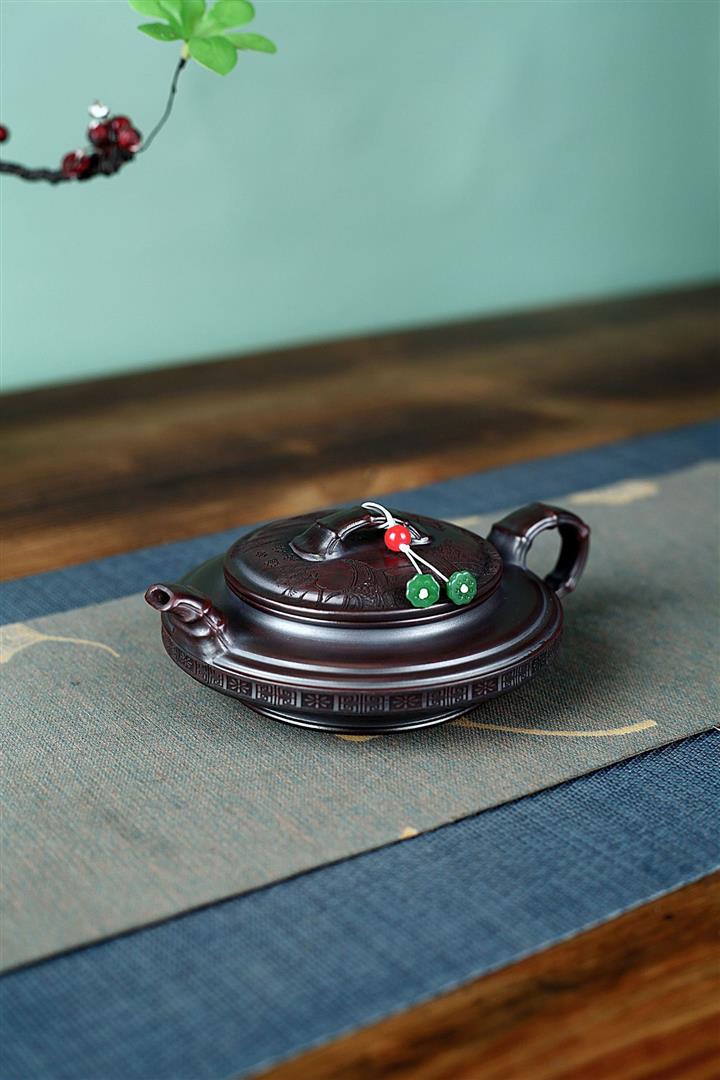 【泥料特點】砂土氣重,似淳實農民,日久使用,漸露鋒芒,養成變化,溫潤莊重。紫砂是壹種雙重氣孔結構的多孔性材質,氣孔微細,密度高。用紫砂壺沏茶,不失原味,且香不渙散,得茶之真香真味。紫砂使用越久,壺身色澤越發光亮照人,氣韻溫雅。紫砂壺長久使用器身會因撫摸擦拭,變得越發溫潤光澤。