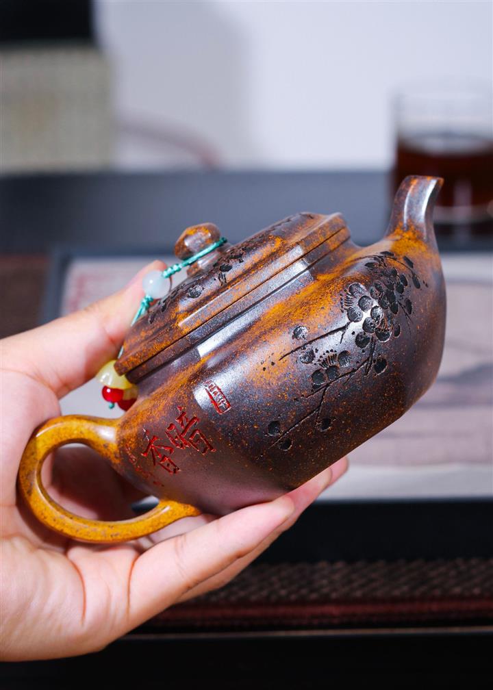 【作品介紹】此款壺形線條流暢,壺把,壺嘴,壺身壹氣呵成栩栩如生,是收藏把玩的好壺,泥料色澤古樸典雅,日久使用,漸露鋒芒,養成變化快,溫潤莊重,用其泡茶,使用的年代久,壺身就溫潤,泡出來的茶湯也就醇郁芳馨。