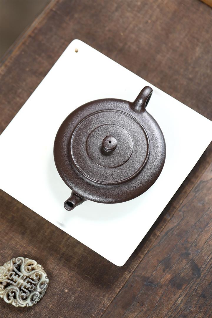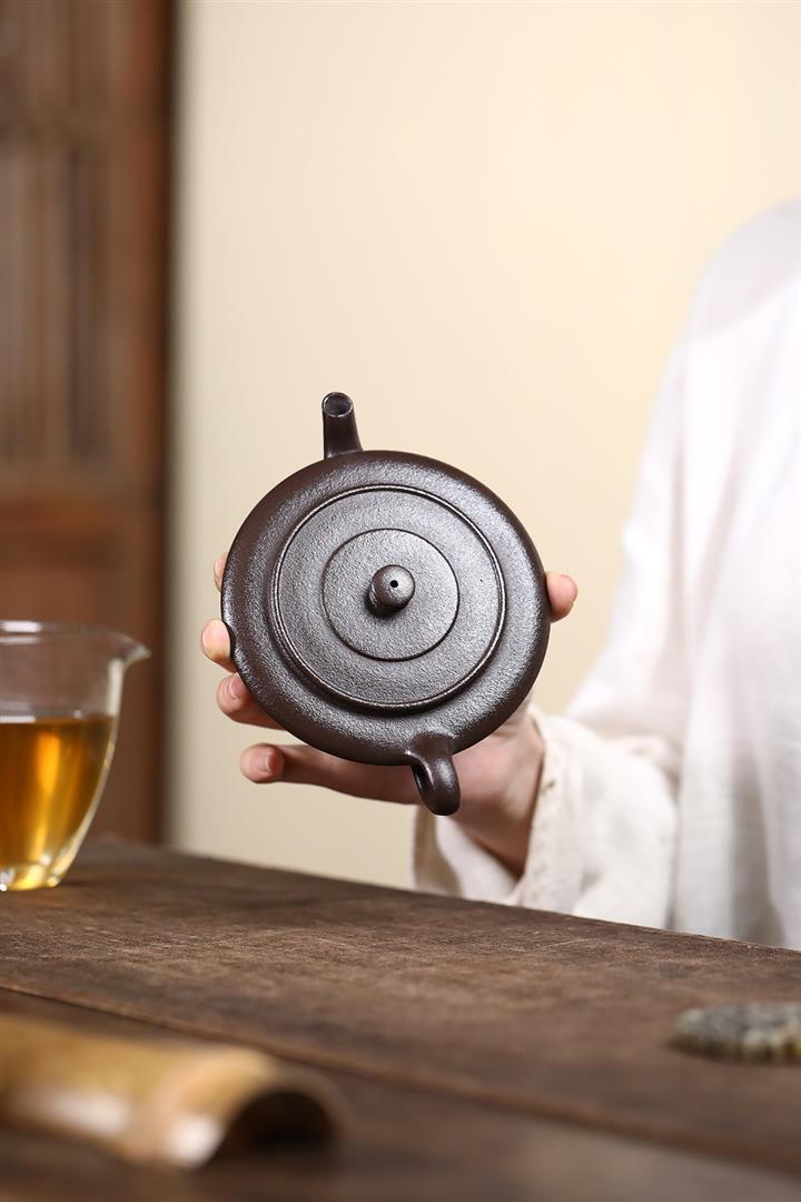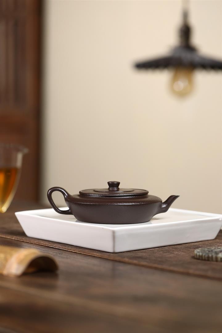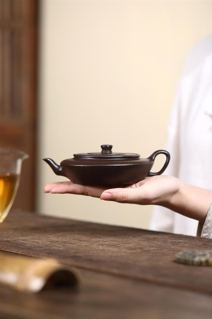 190cc原礦石黃泥金砂虛扁高端茶壺POT8472