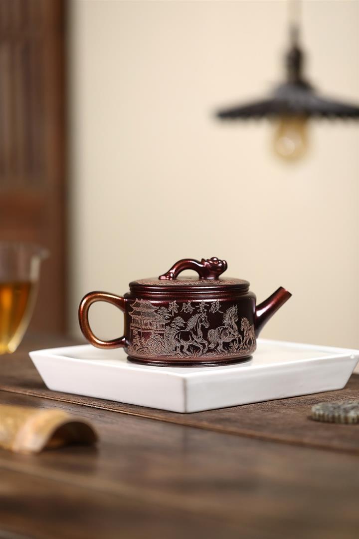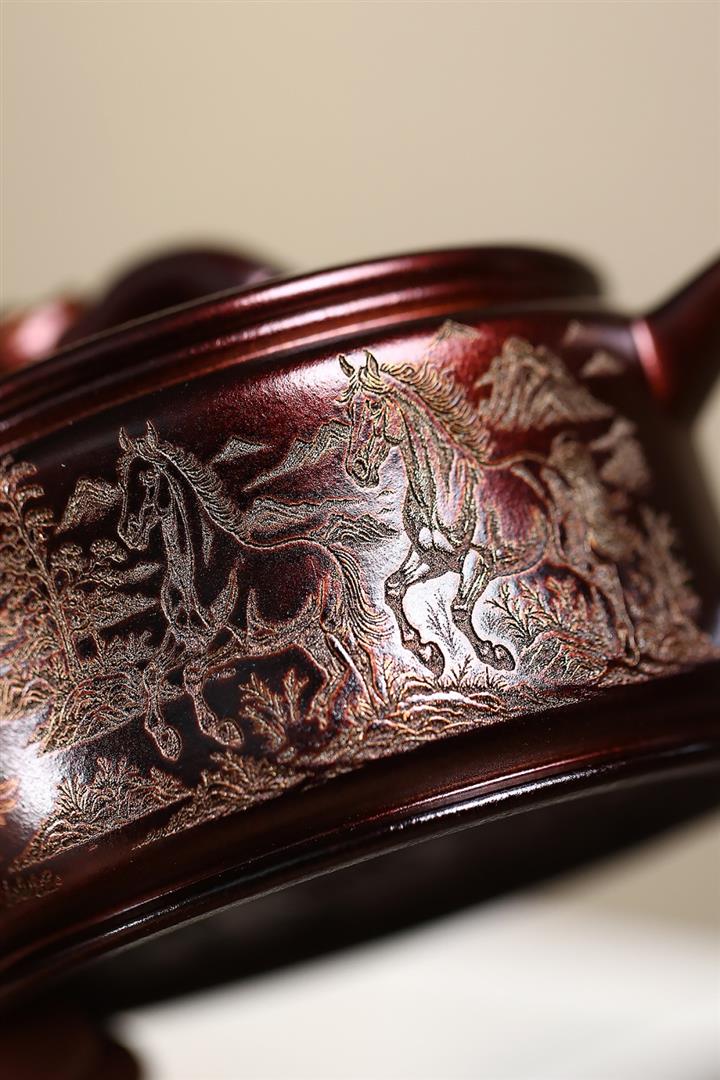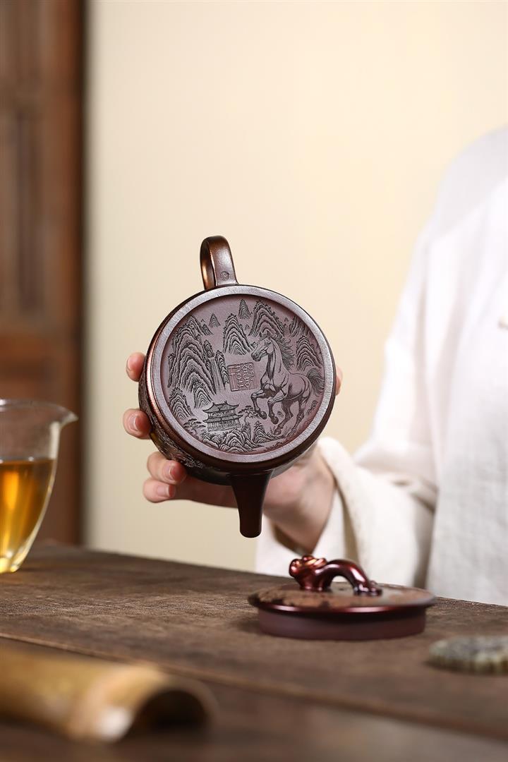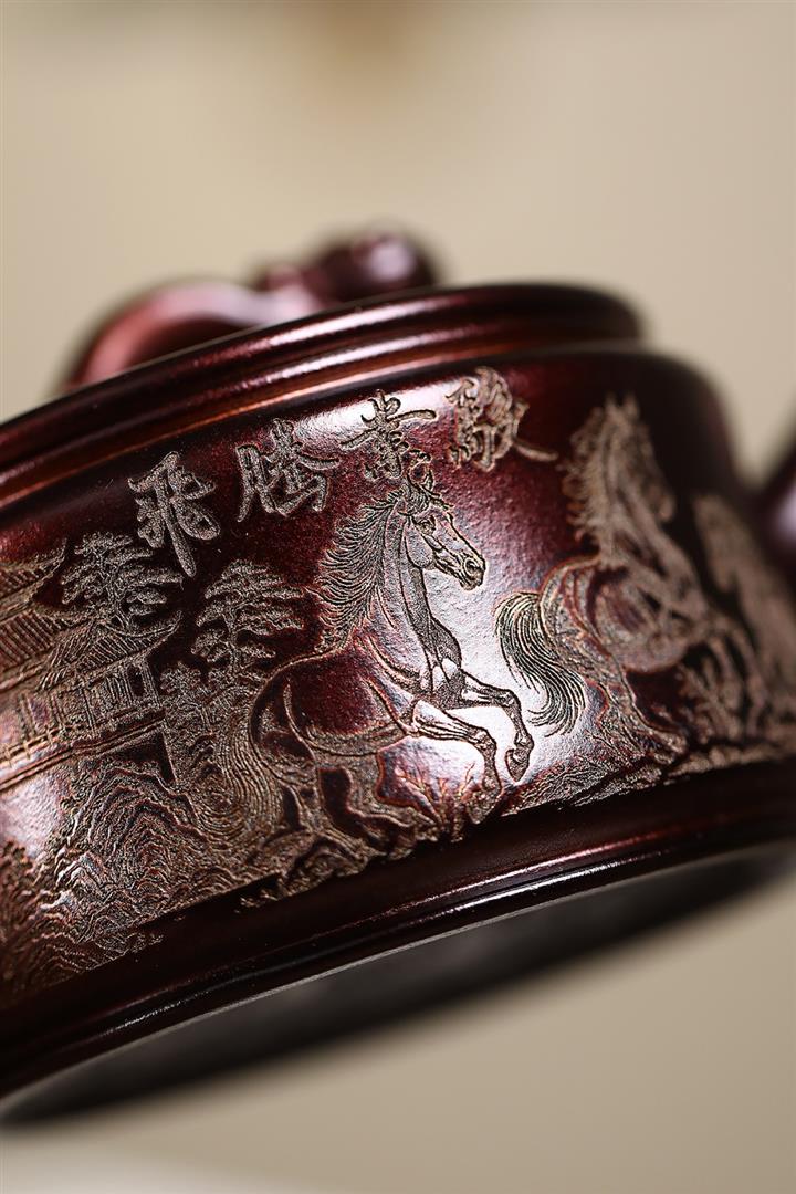 原礦紫泥刻繪德鐘壺POT7173