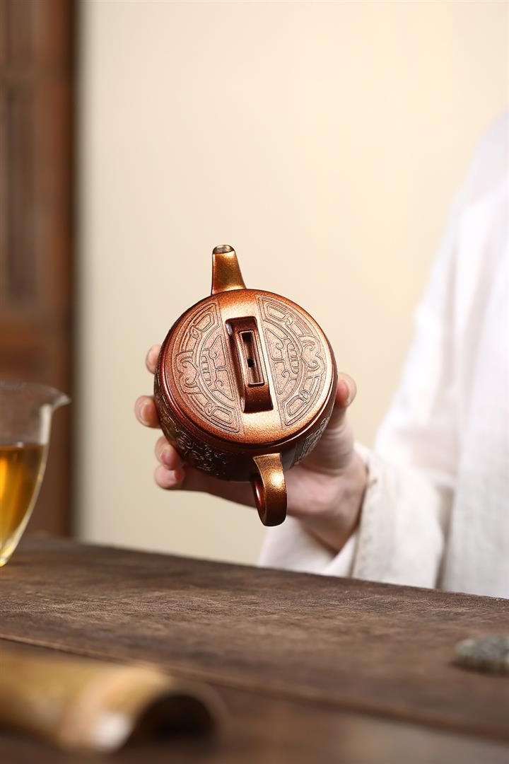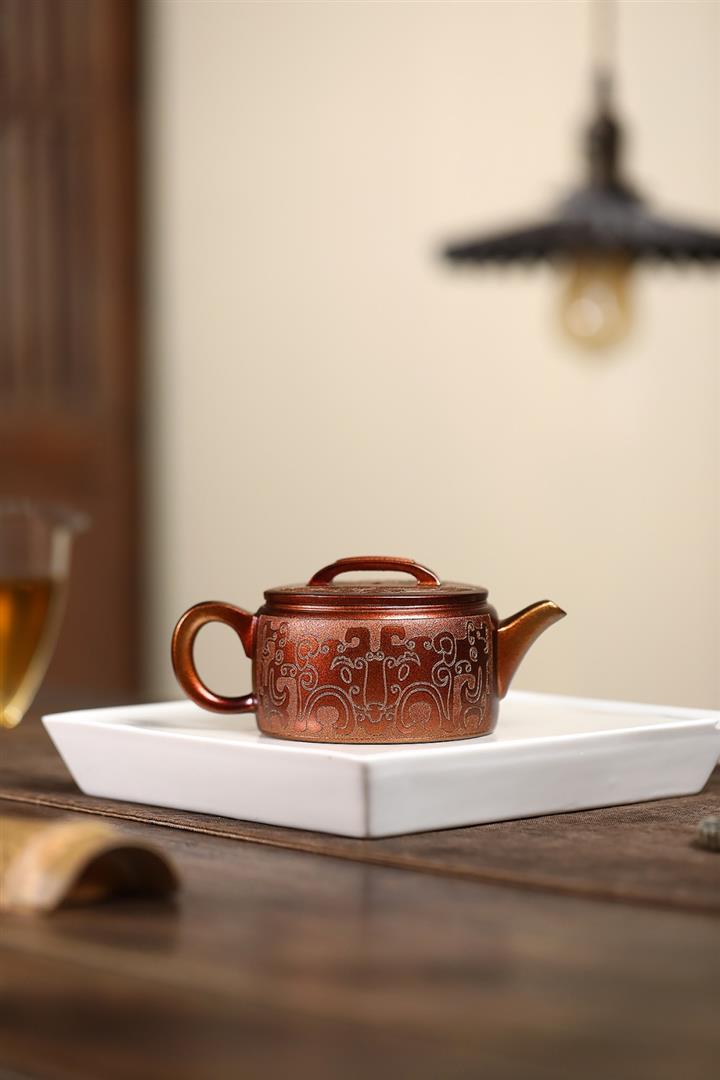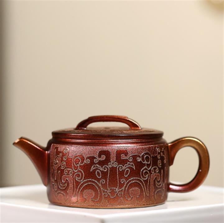 250cc原礦龍血砂貝殼燒金砂龍瓦茶壺POT8480