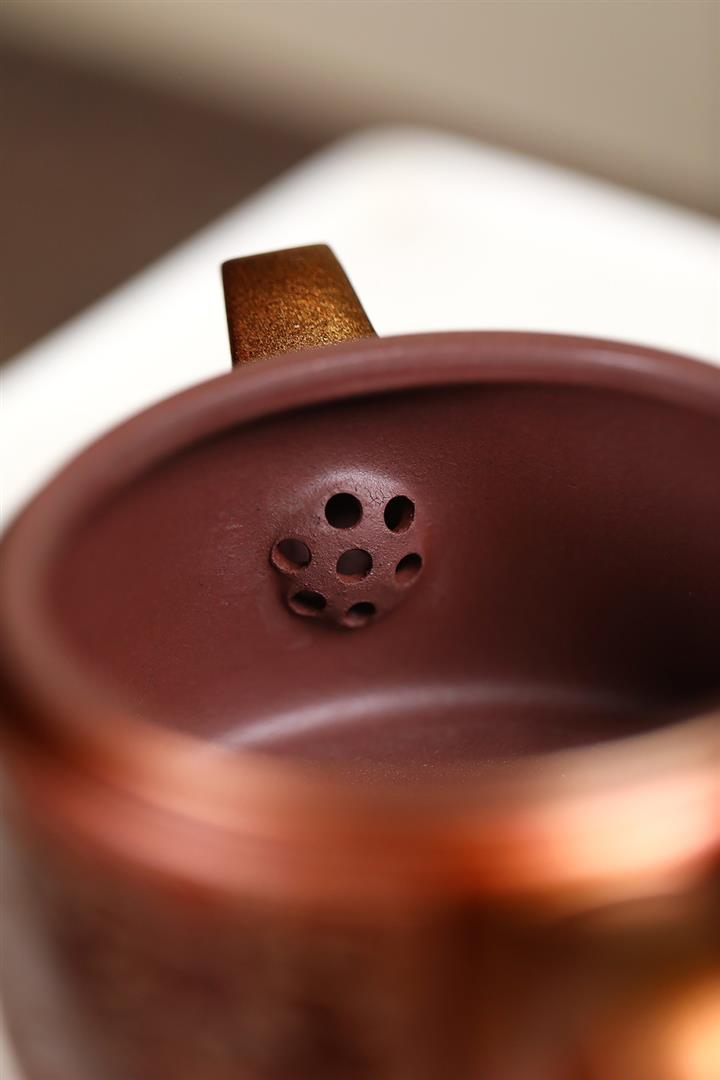 【作品介紹】此款壺形線條流暢,壺把,壺嘴,壺身壹氣呵成栩栩如生,是收藏把玩的好壺,泥料色澤古樸典雅,日久使用,漸露鋒芒,養成變化快,溫潤莊重,用其泡茶,使用的年代久,壺身就溫潤,泡出來的茶湯也就醇郁芳馨。