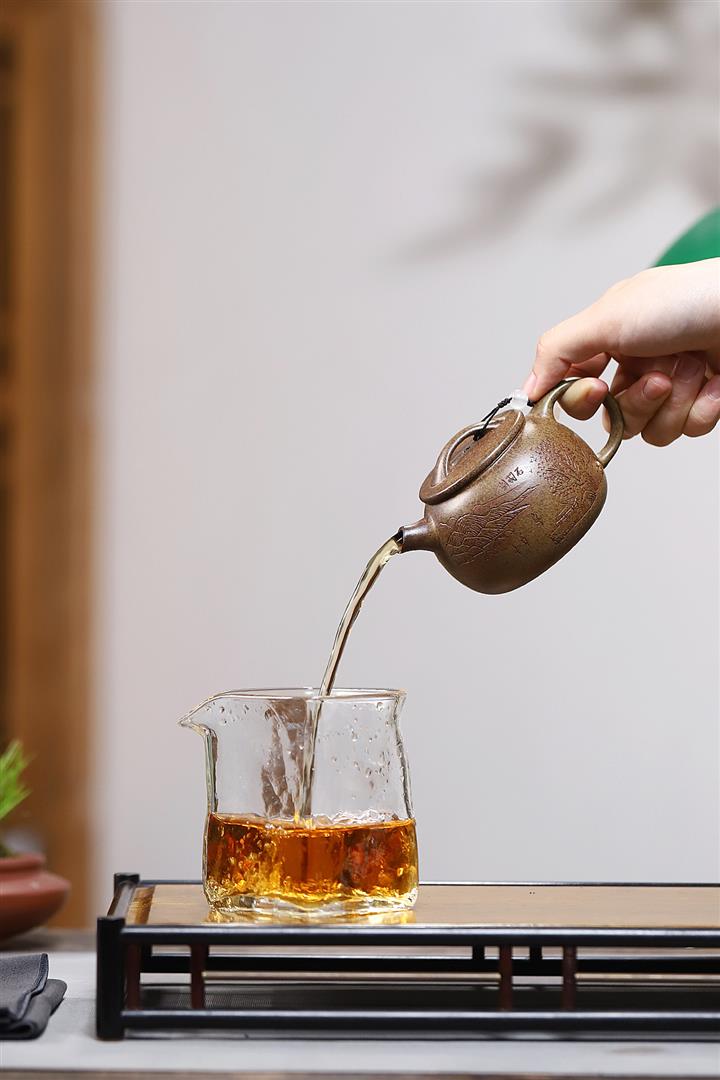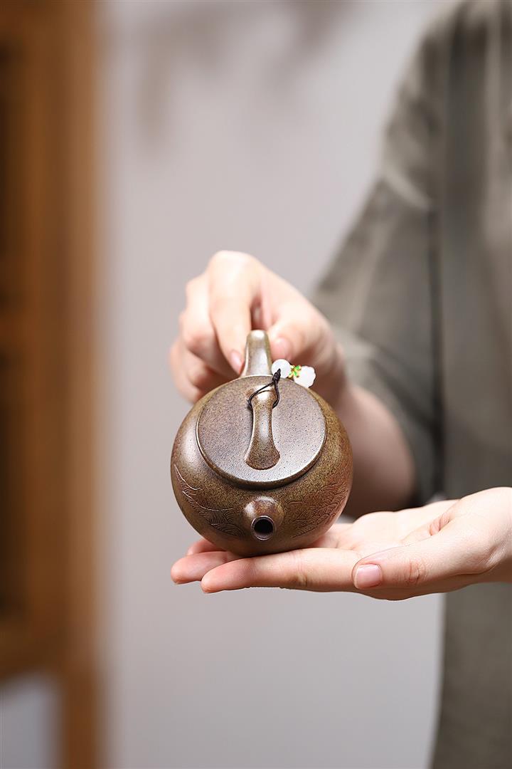 【泥料特點】砂土氣重,似淳實農民,日久使用,漸露鋒芒,養成變化,溫潤莊重。紫砂是壹種雙重氣孔結構的多孔性材質,氣孔微細,密度高。用紫砂壺沏茶,不失原味,且香不渙散,得茶之真香真味。紫砂使用越久,壺身色澤越發光亮照人,氣韻溫雅。紫砂壺長久使用器身會因撫摸擦拭,變得越發溫潤光澤。