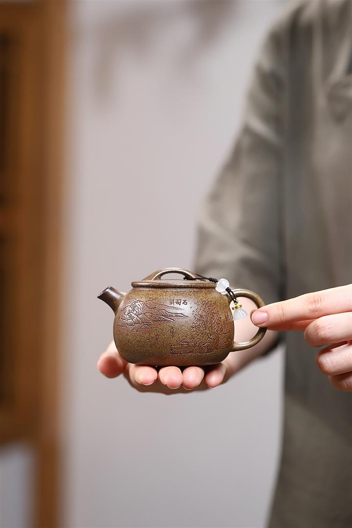 原礦綠泥如意仿古紫砂壶POT4983