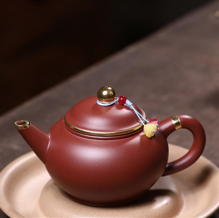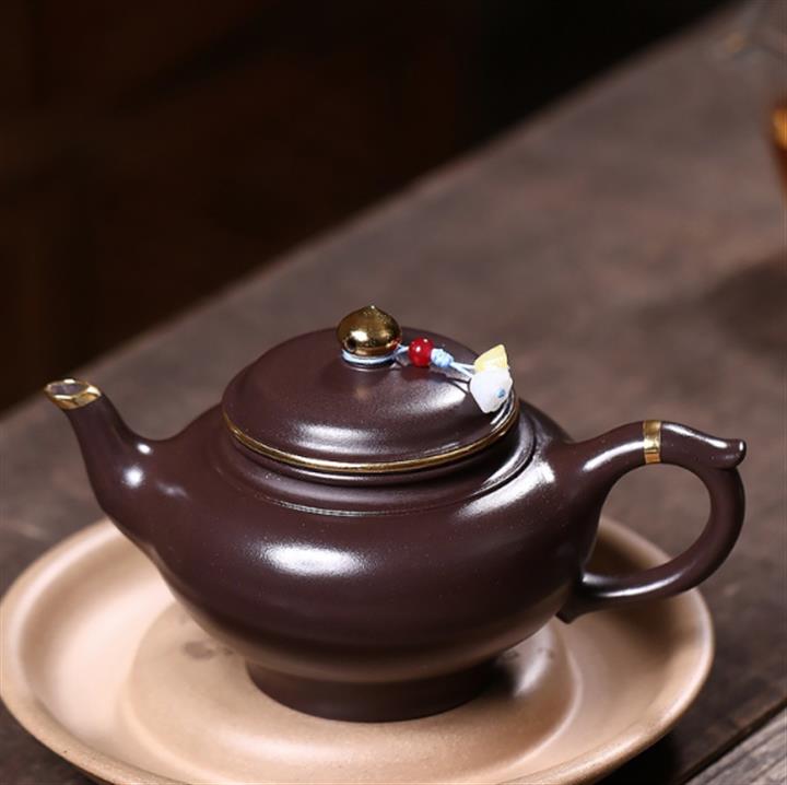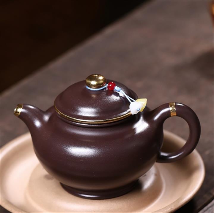原礦百目紫泥描金文人掇只茶壺POT7814
