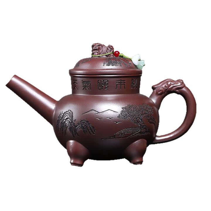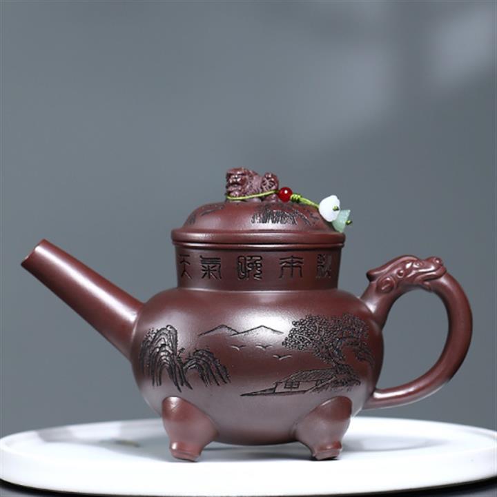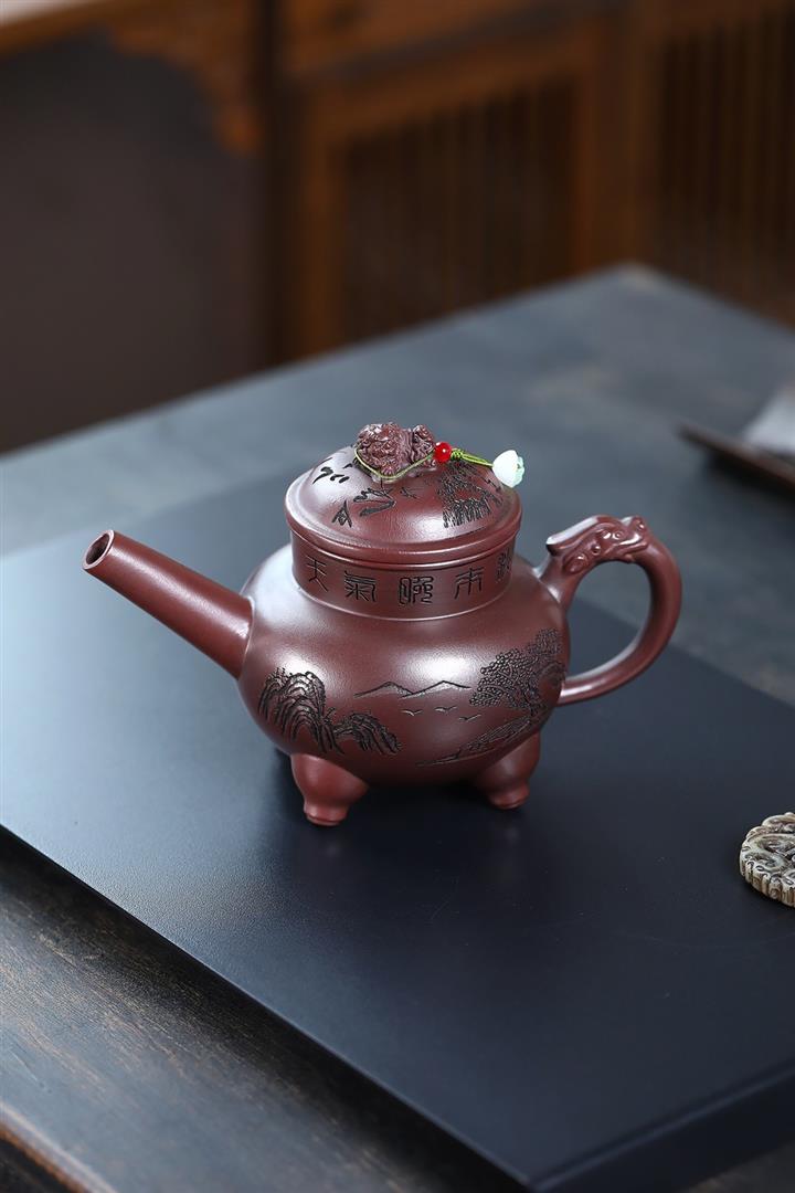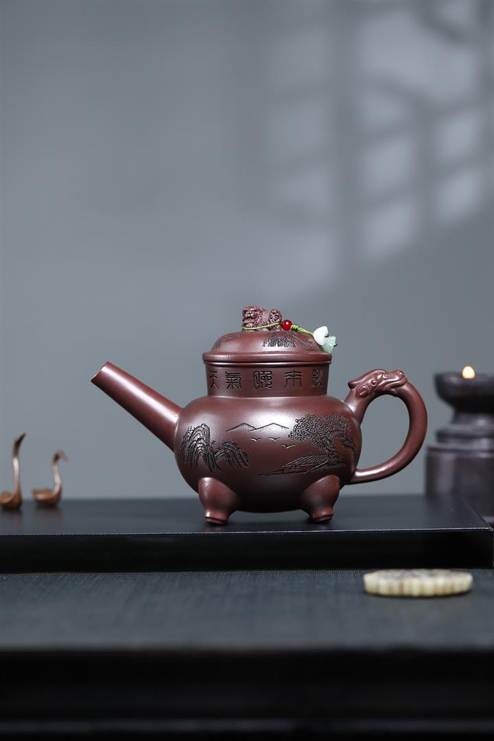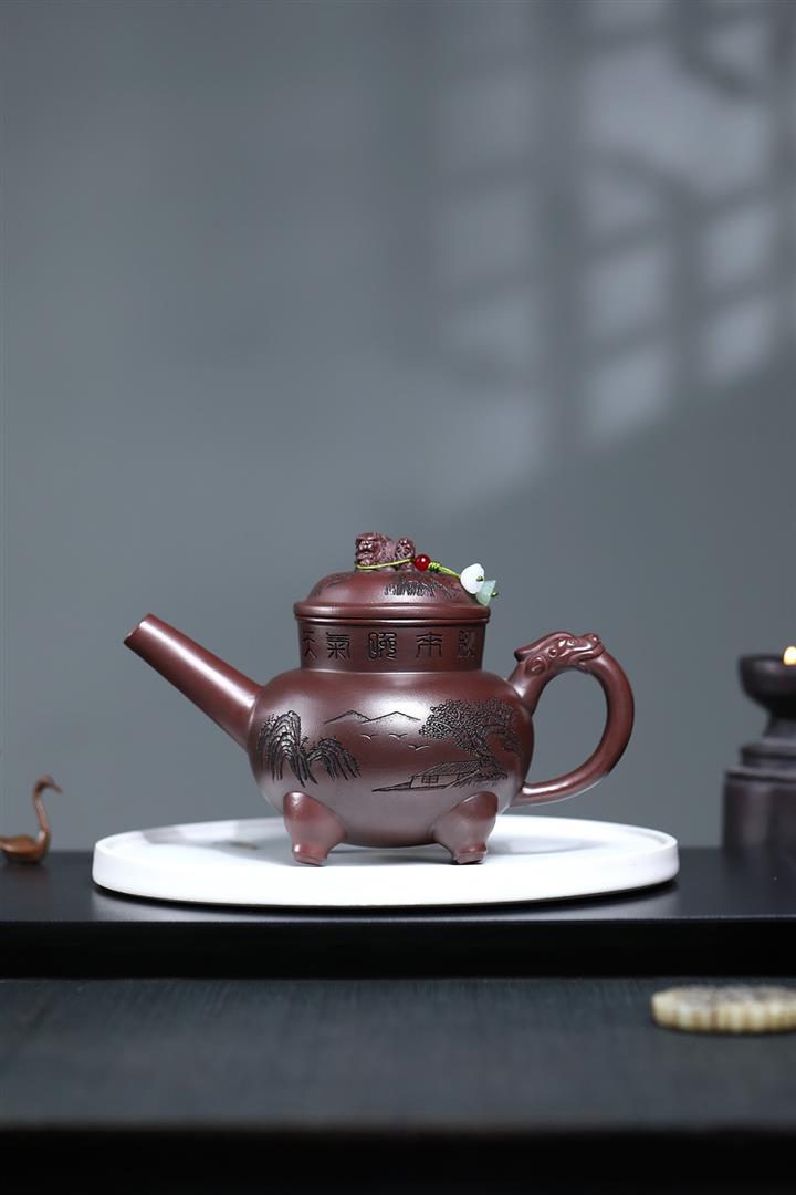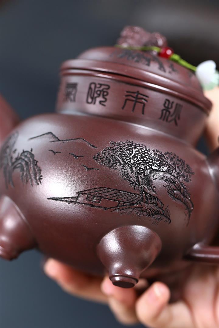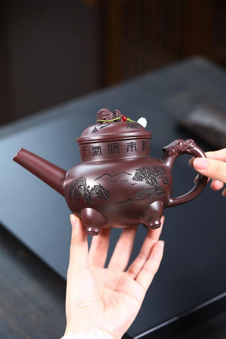 原礦革紫泥純手工刻繪樹樁茶壺POT6820