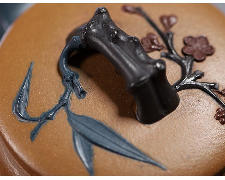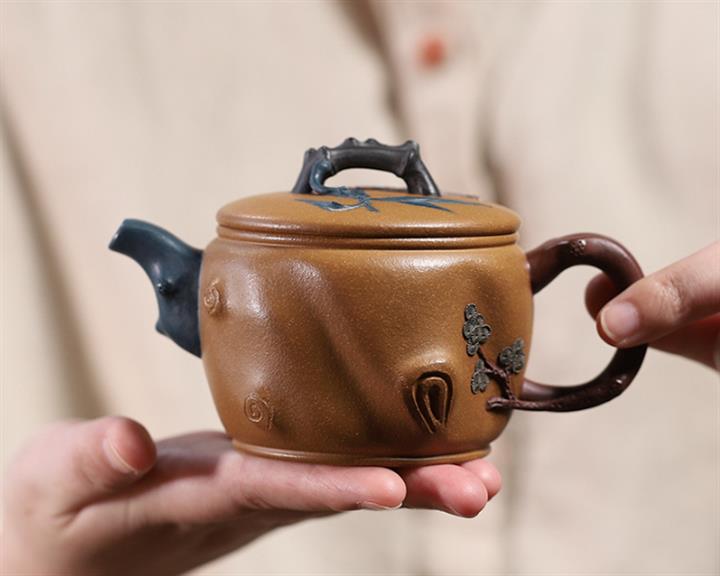【泥料特點】砂土氣重,似淳實農民,日久使用,漸露鋒芒,養成變化,溫潤莊重。紫砂是壹種雙重氣孔結構的多孔性材質,氣孔微細,密度高。用紫砂壺沏茶,不失原味,且香不渙散,得茶之真香真味。紫砂使用越久,壺身色澤越發光亮照人,氣韻溫雅。紫砂壺長久使用器身會因撫摸擦拭,變得越發溫潤光澤。