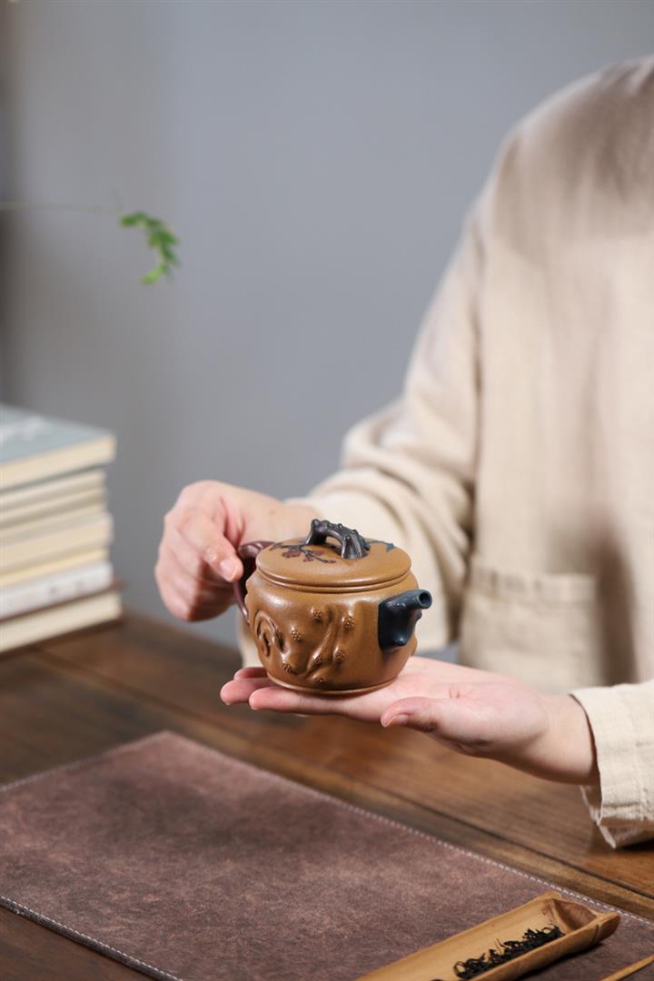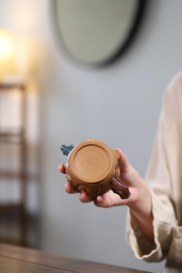 【作品介紹】此款壺形線條流暢,壺把,壺嘴,壺身壹氣呵成栩栩如生,是收藏把玩的好壺,泥料色澤古樸典雅,日久使用,漸露鋒芒,養成變化快,溫潤莊重,用其泡茶,使用的年代久,壺身就溫潤,泡出來的茶湯也就醇郁芳馨。