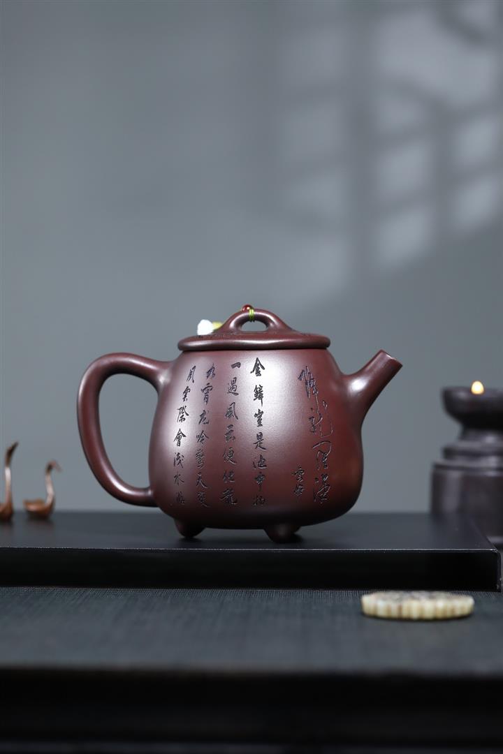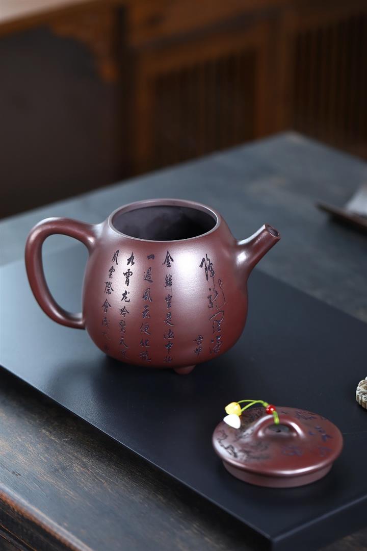 200cc原礦降坡泥柴燒刻字玉婉茶壺POT9012