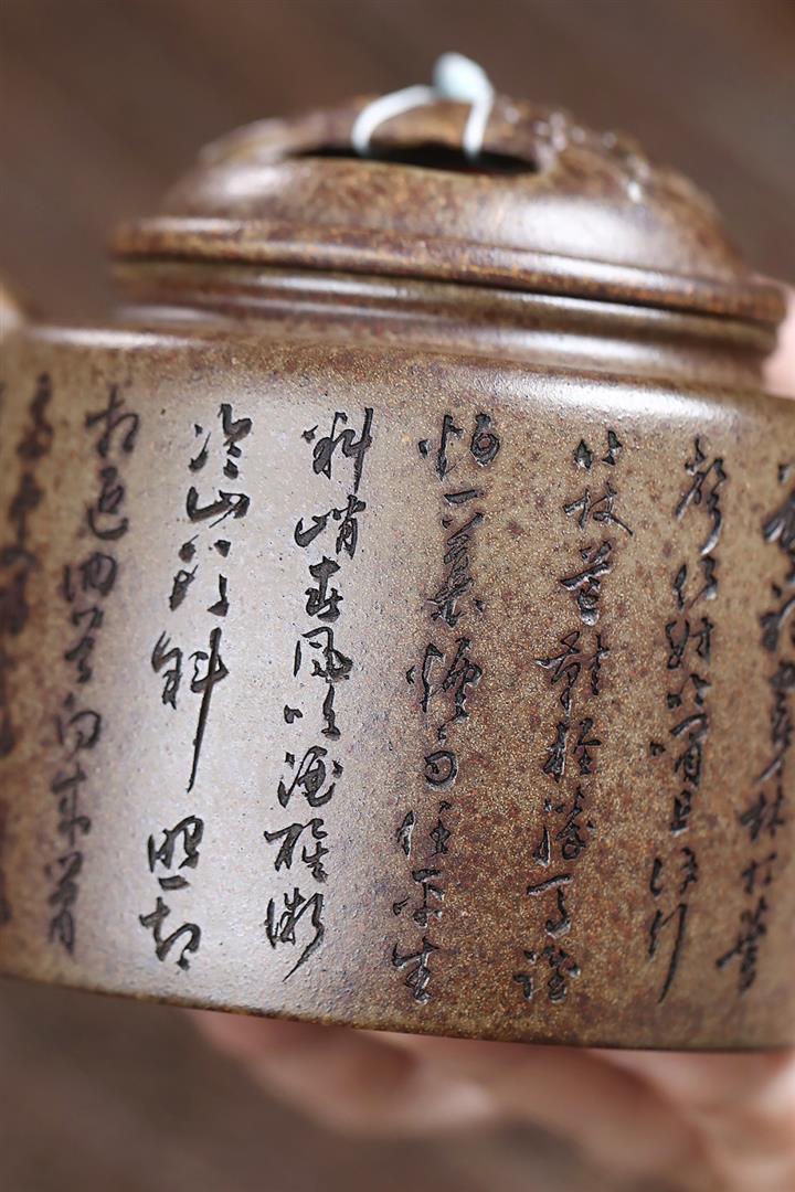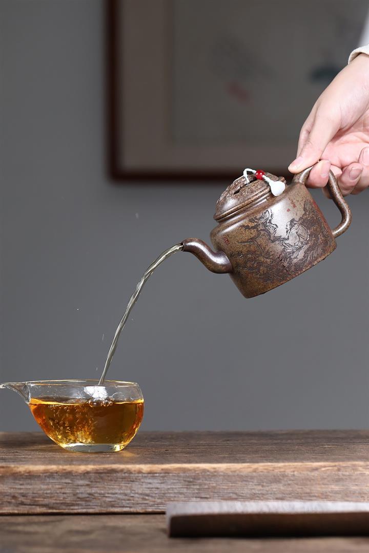 【泥料特點】砂土氣重,似淳實農民,日久使用,漸露鋒芒,養成變化,溫潤莊重。紫砂是壹種雙重氣孔結構的多孔性材質,氣孔微細,密度高。用紫砂壺沏茶,不失原味,且香不渙散,得茶之真香真味。紫砂使用越久,壺身色澤越發光亮照人,氣韻溫雅。紫砂壺長久使用器身會因撫摸擦拭,變得越發溫潤光澤。
