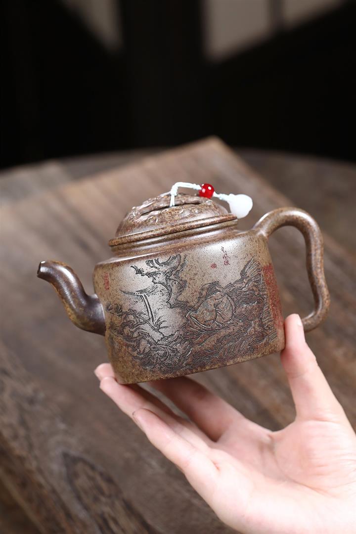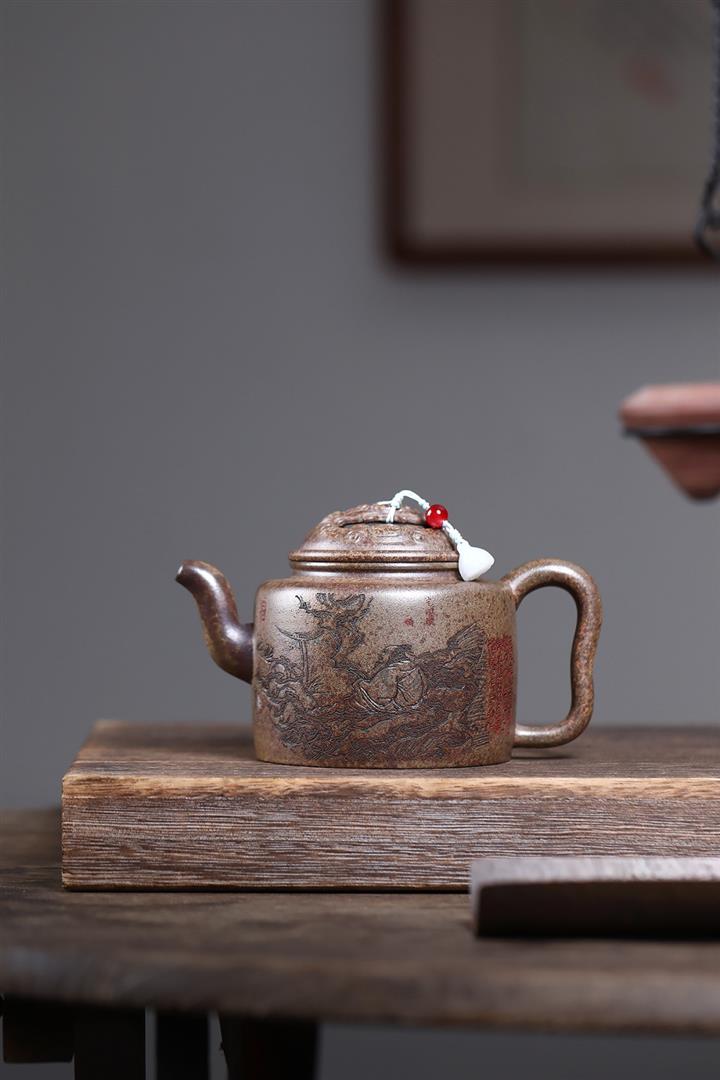 【作品介紹】此款壺形線條流暢,壺把,壺嘴,壺身壹氣呵成栩栩如生,是收藏把玩的好壺,泥料色澤古樸典雅,日久使用,漸露鋒芒,養成變化快,溫潤莊重,用其泡茶,使用的年代久,壺身就溫潤,泡出來的茶湯也就醇郁芳馨。