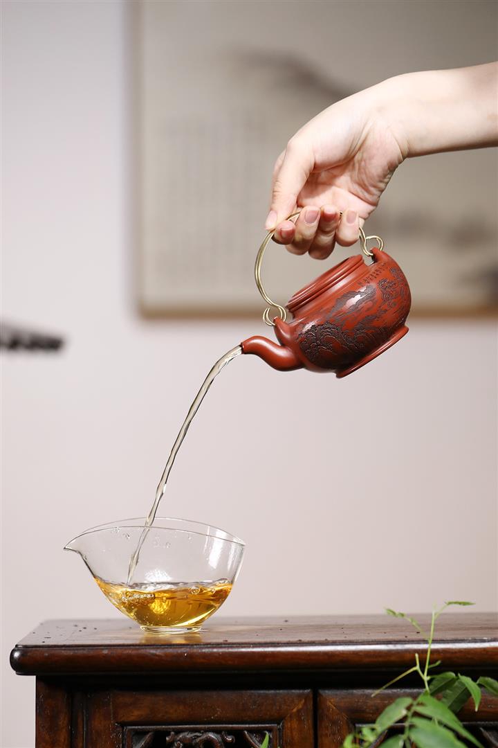 【作品介紹】此款壺形線條流暢,壺把,壺嘴,壺身壹氣呵成栩栩如生,是收藏把玩的好壺,泥料色澤古樸典雅,日久使用,漸露鋒芒,養成變化快,溫潤莊重,用其泡茶,使用的年代久,壺身就溫潤,泡出來的茶湯也就醇郁芳馨。