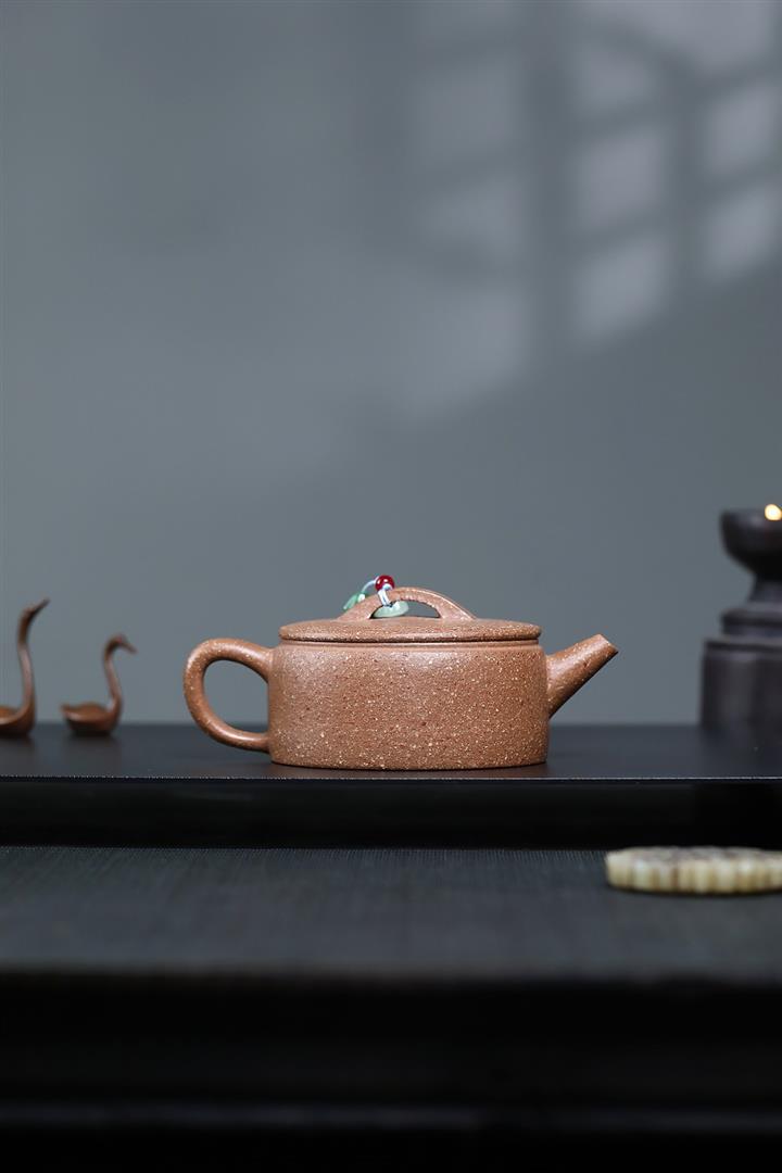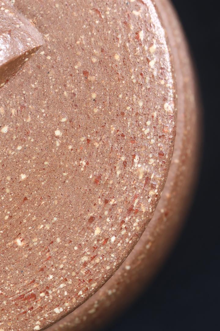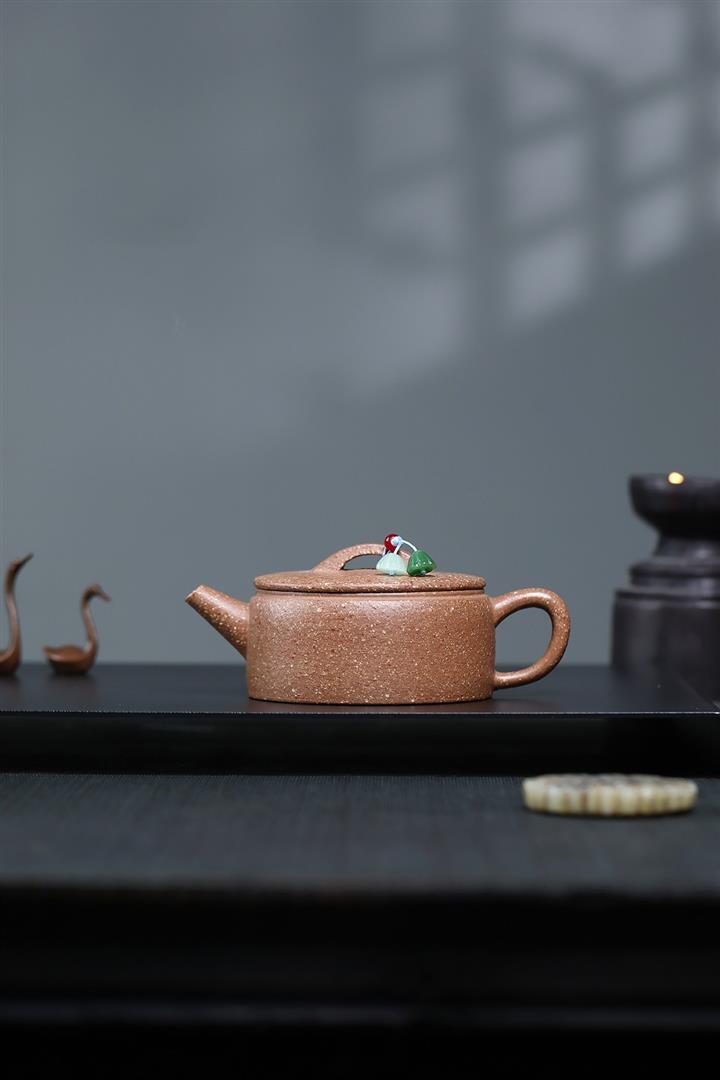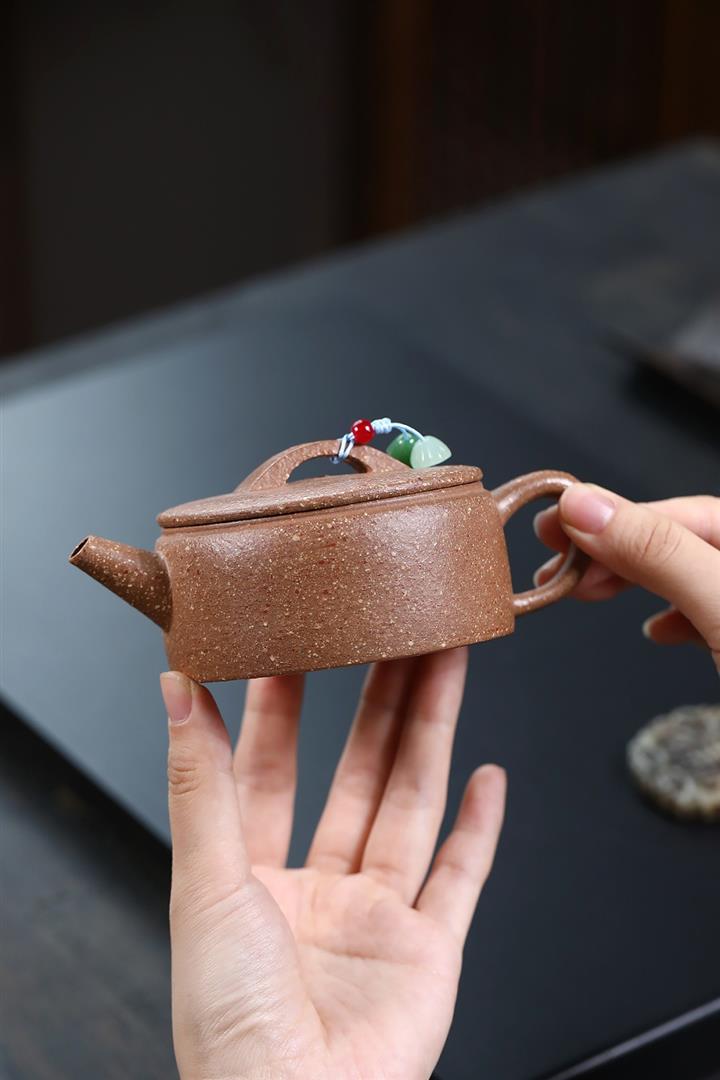 【泥料特點】砂土氣重,似淳實農民,日久使用,漸露鋒芒,養成變化,溫潤莊重。紫砂是壹種雙重氣孔結構的多孔性材質,氣孔微細,密度高。用紫砂壺沏茶,不失原味,且香不渙散,得茶之真香真味。紫砂使用越久,壺身色澤越發光亮照人,氣韻溫雅。紫砂壺長久使用器身會因撫摸擦拭,變得越發溫潤光澤。